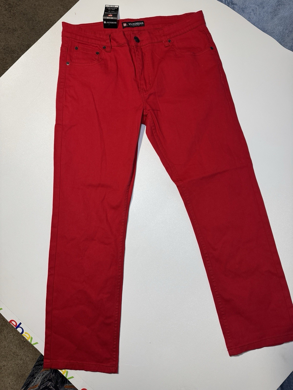 как выглядит Victorious Mens Slim Fit Colored Denim Jeans Stretch Pants GS21 - Red фото
