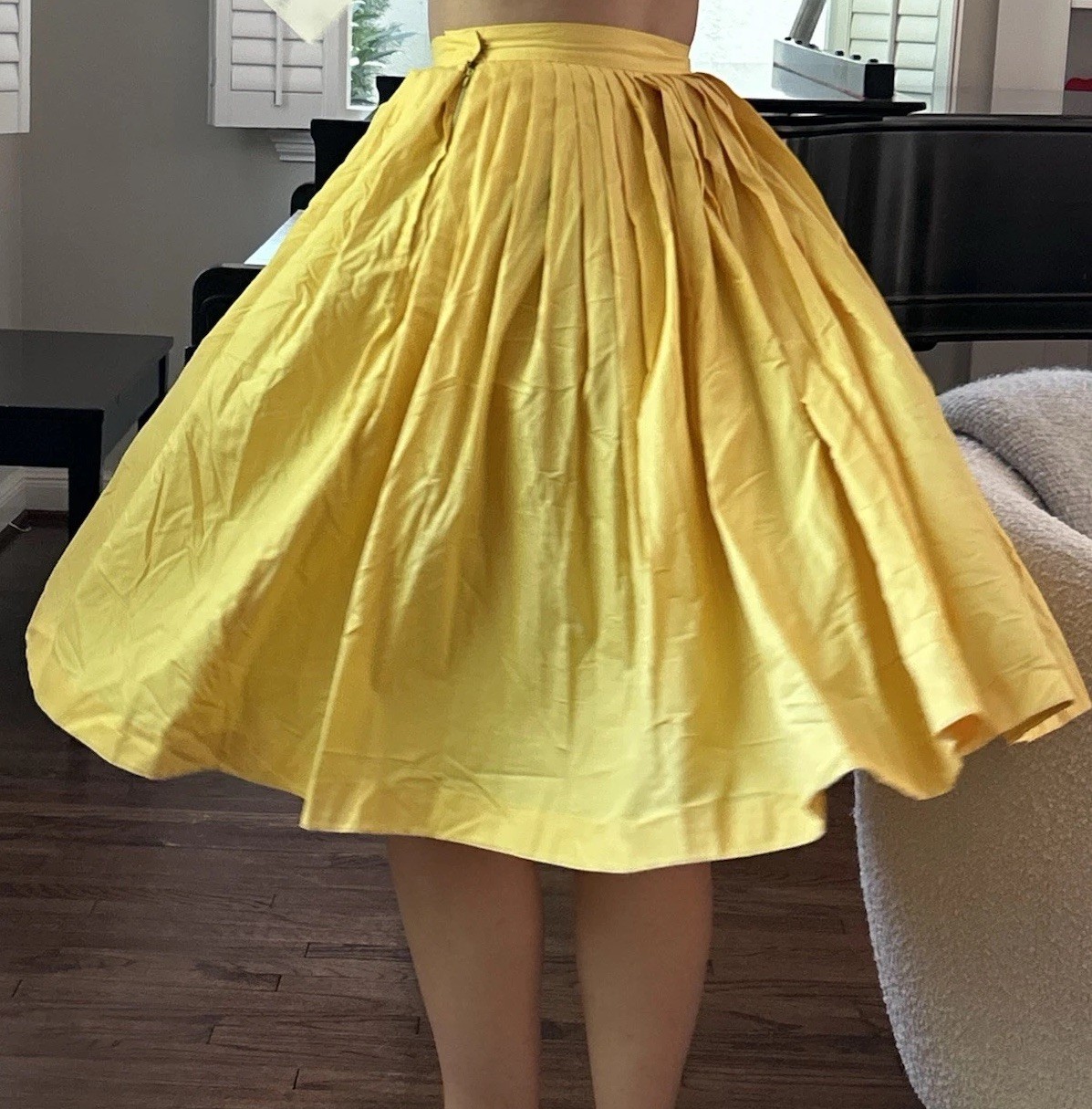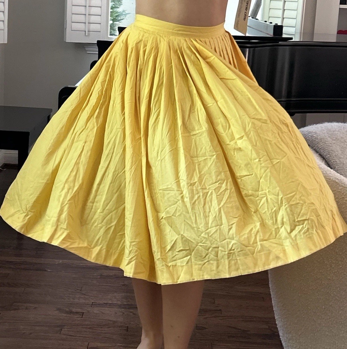 как выглядит Vintage Handmade 50s Circle Full Skirt Pleated Yellow Cotton фото