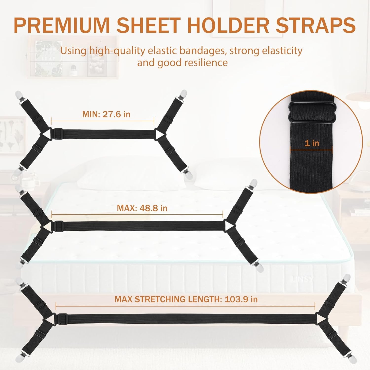 Bed Sheet Holder Straps 2Pcs Adjustable Elastic Fitted Sheet Grippers