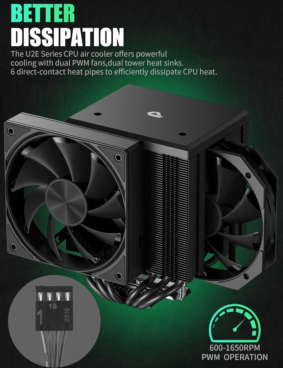 High-Performance Black CPU Cooler for AM5/AM4/AM3 - Quiet Efficient Operation