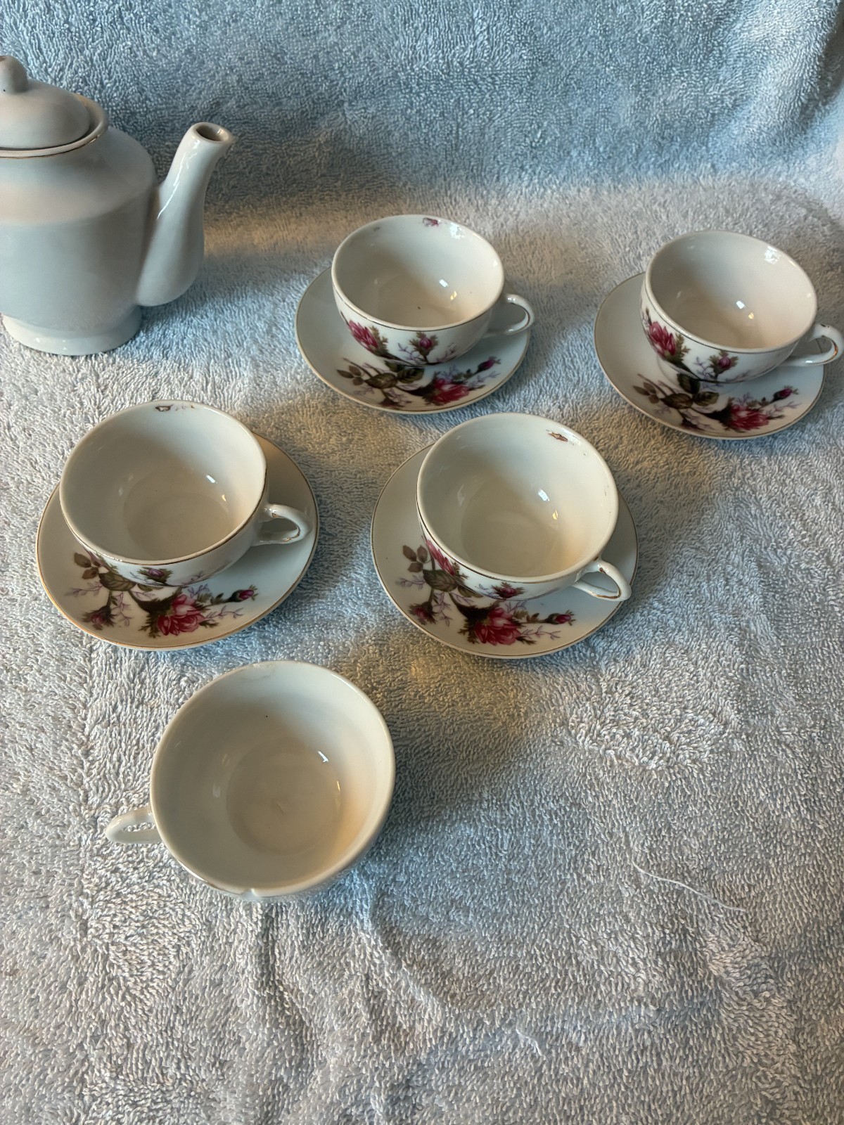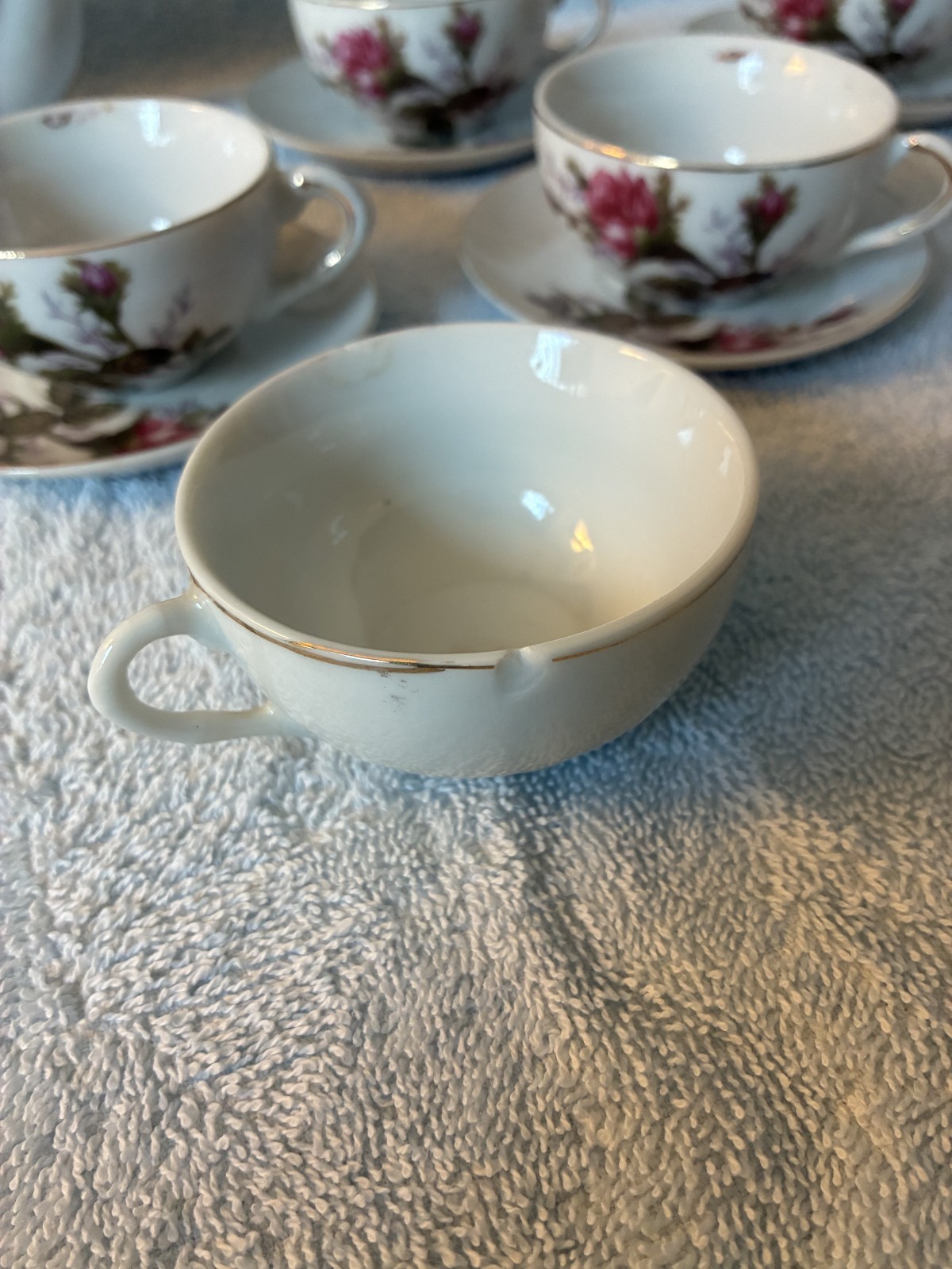 Vintage Japanese Child's Porcelain Tea Set with Moss Rose Pattern