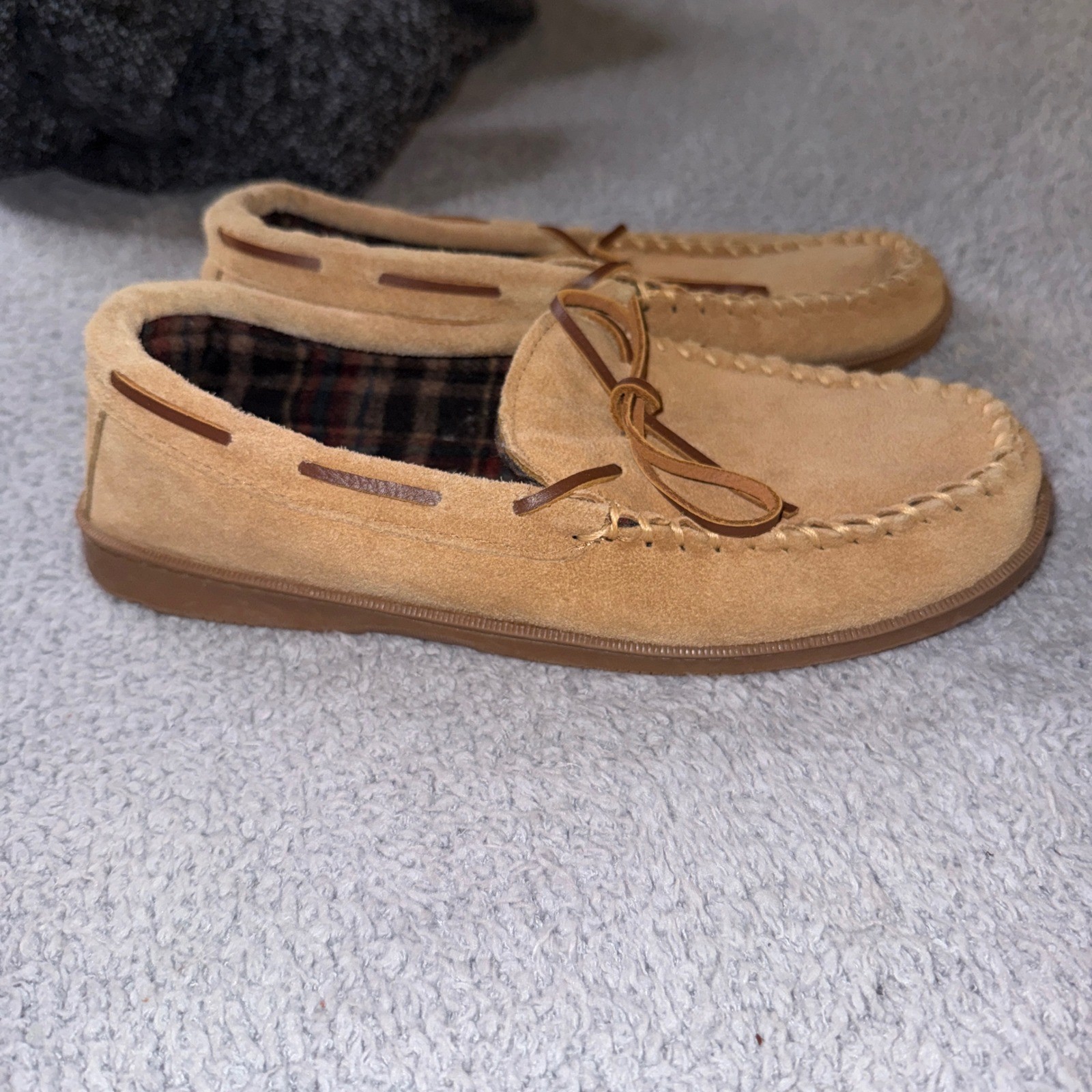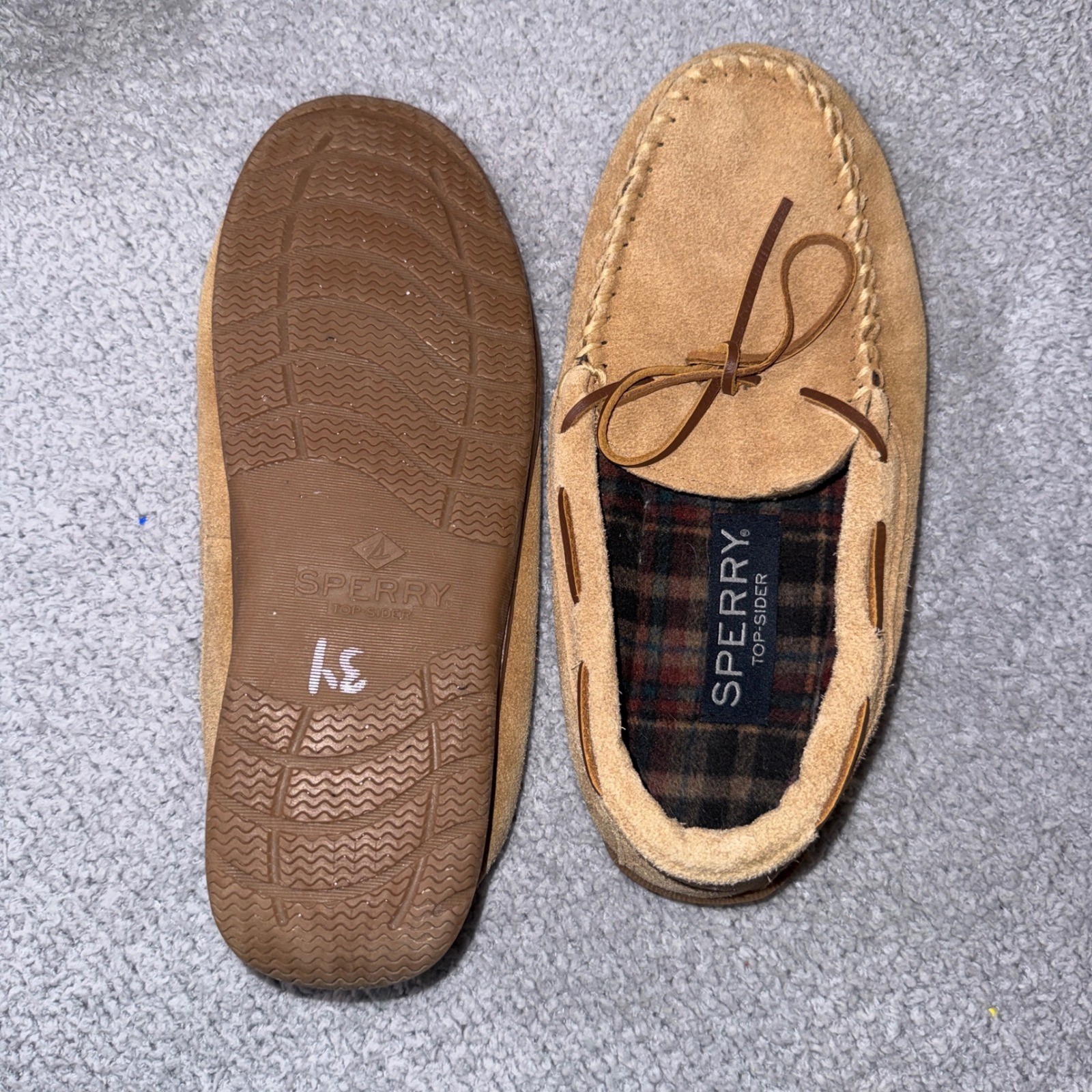 как выглядит Sperry Top-Sider Mens Moccasin Slippers Tan Suede Leather Plaid Lined size 8 фото