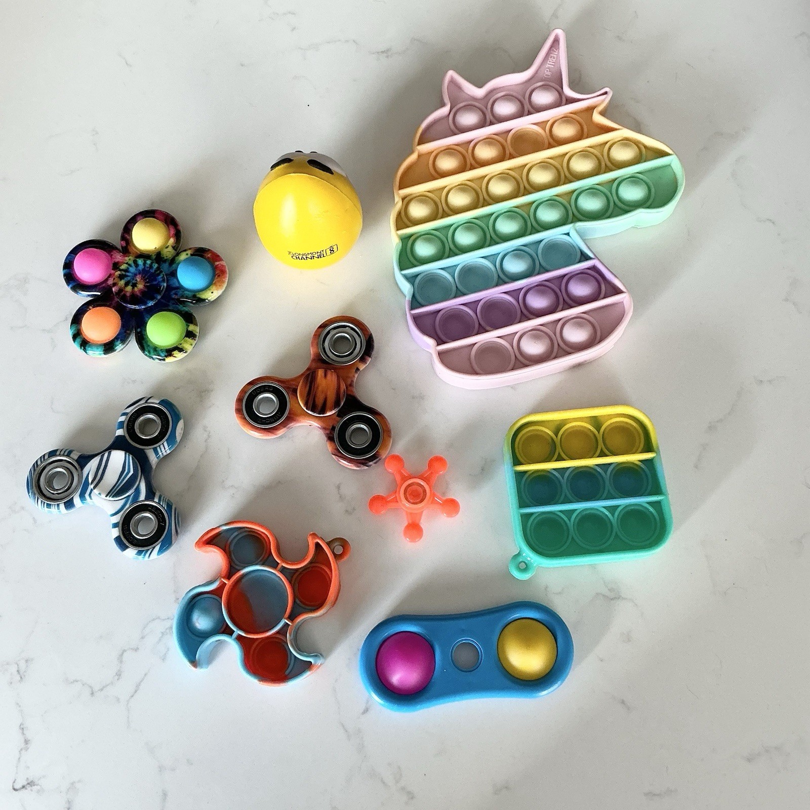 Fidget Lot Of 9 - Pop-its, Spinners, Squishy Egg