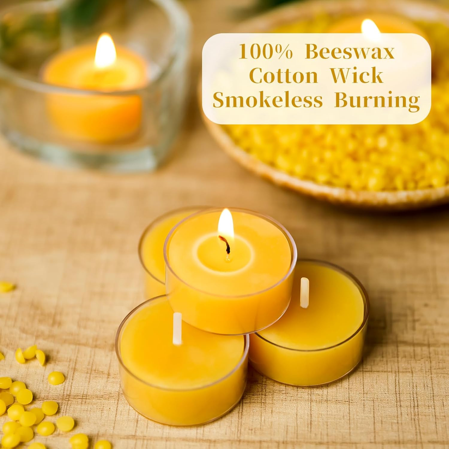 20 Pack Beeswax Tealight Candles Bulk 4 Hours 100 Pure Beeswax Tea Lights Can..