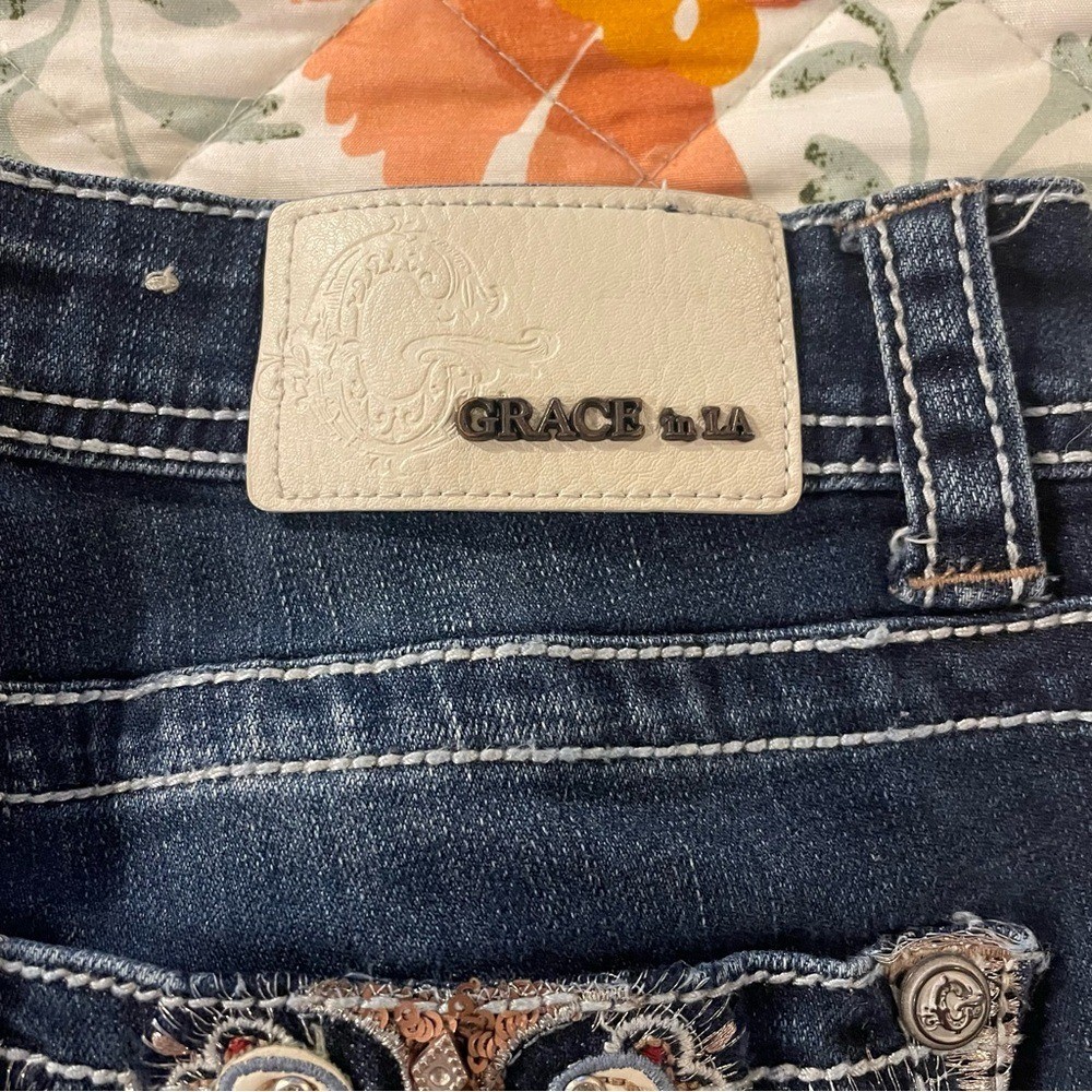 как выглядит Grace in LA Boot Cut Jeans with Paisley Embroidery Womens Size 29 Cowgirl Bling фото
