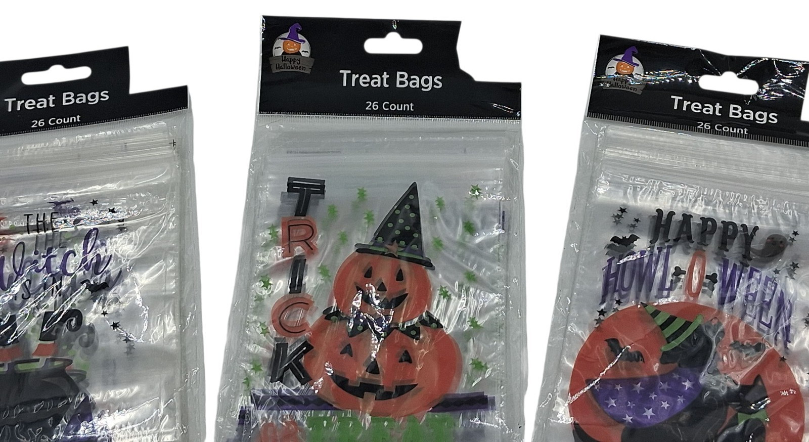 как выглядит Halloween Treat Bags Pumpkins Bats And Caldron W/ Witch Black Cat Zip Lock 78pc фото