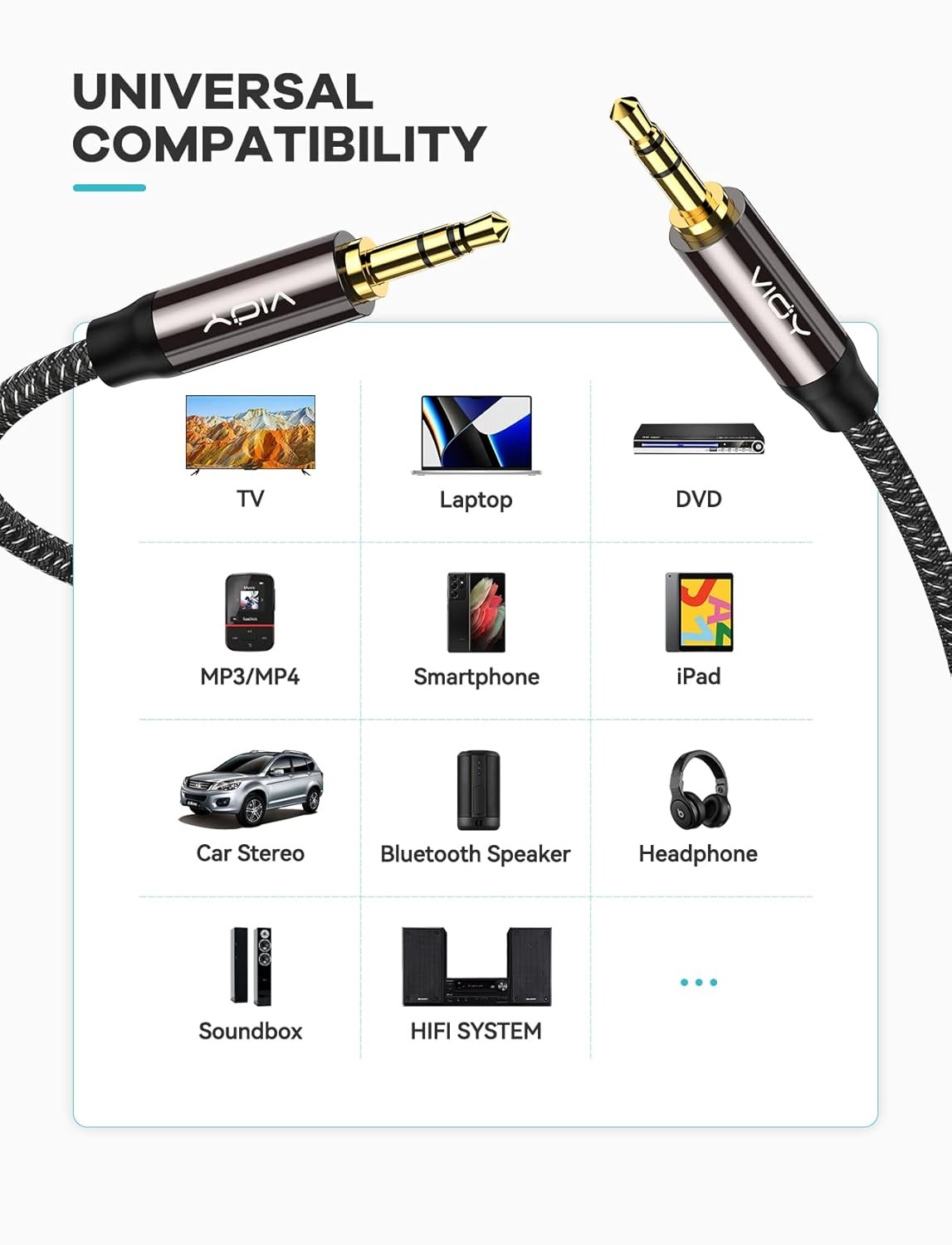 Aux Cable 20 Ft , Copper Shell, Hi-Fi Sound 3.5 Mm Male to Male Braided Auxil