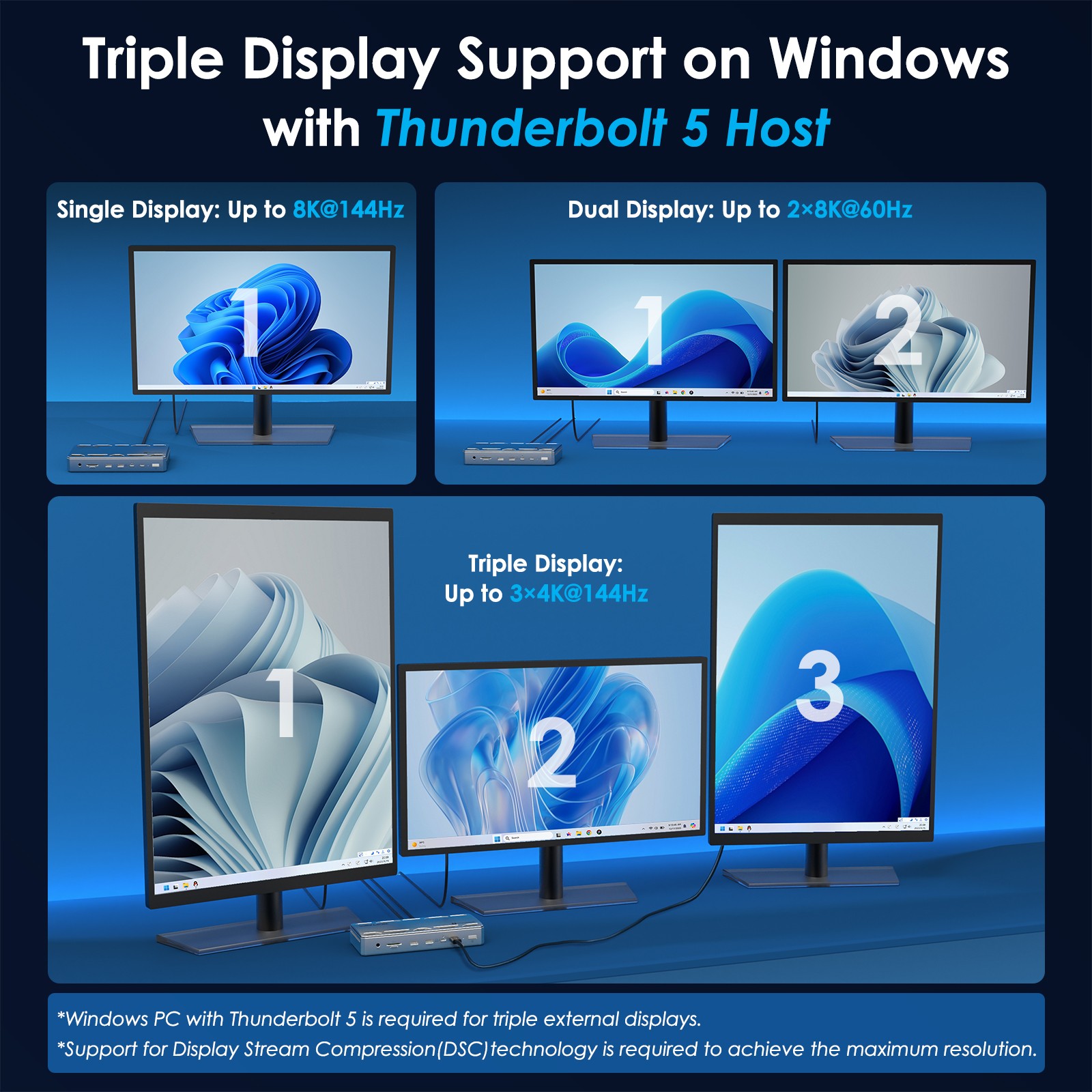 Ports: TBT5 Dock(120Gbps)/Dual 8K/6K Display/140W PD