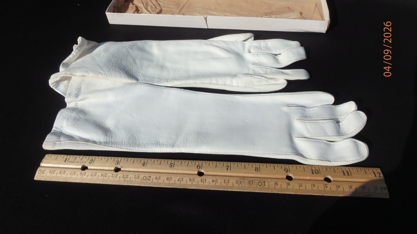 как выглядит Vintage 1950s Fownes Ladies 12" White Leather Gloves Small Size In Original Box фото