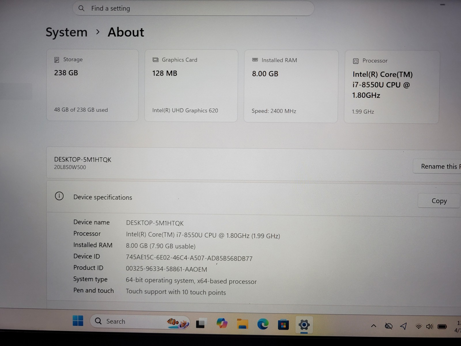 Lenovo ThinkPad T480s Intel Core i7-8550U 8GB RAM 256GB Windows 11 Home - CLP9A