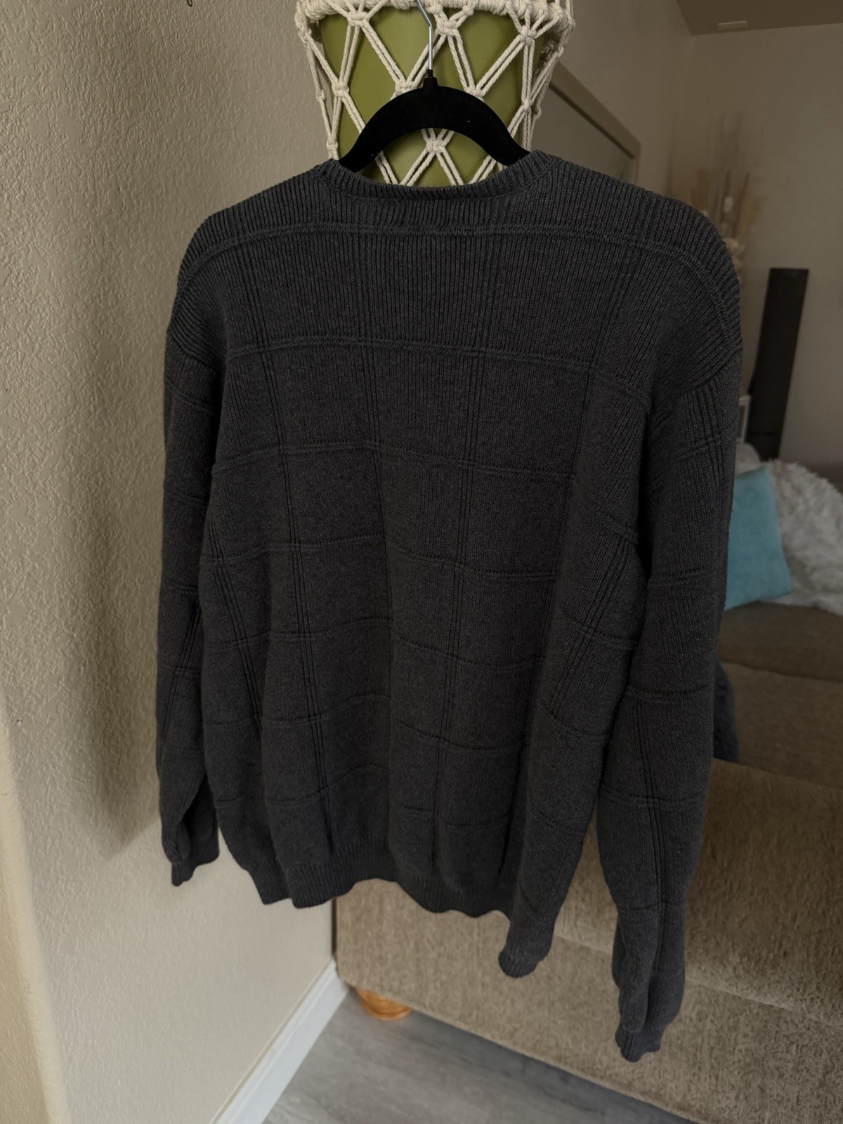 как выглядит Arrow Mens Dark Gray Textured Crewneck Sweater 100 Cotton Size XL фото