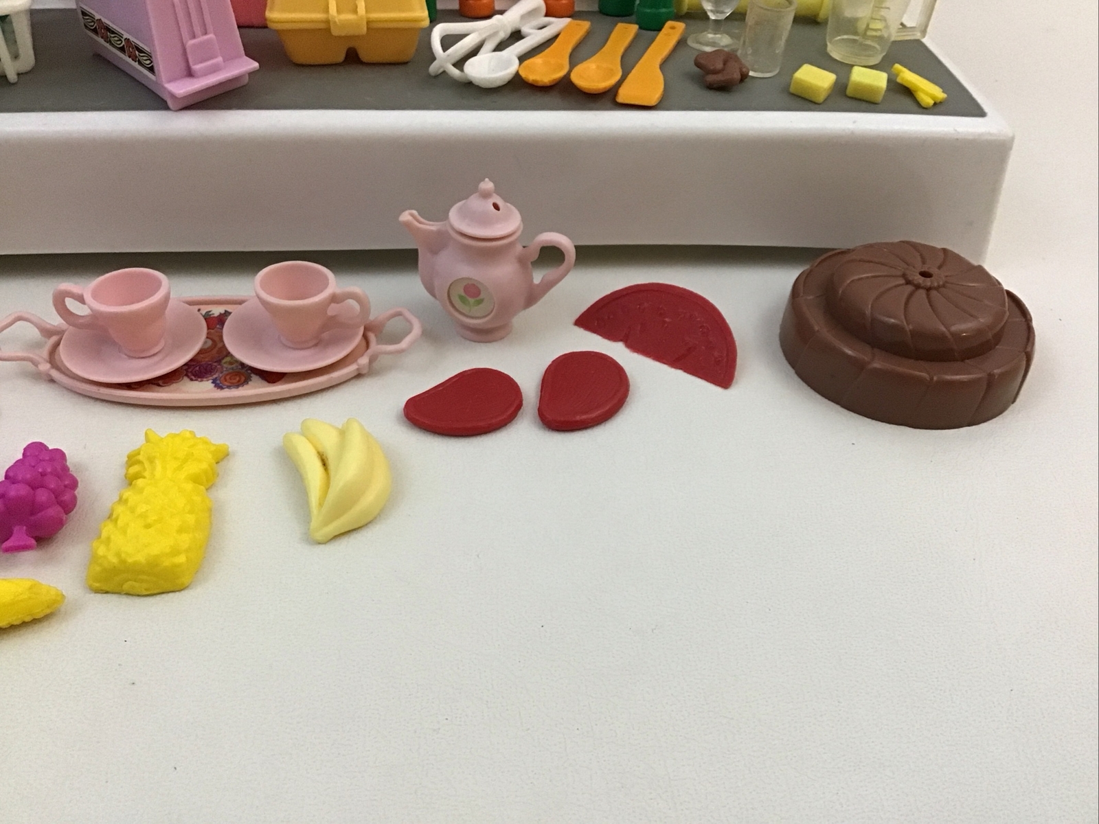 Barbie Kitchen Food Accessories Lot Plates Utensils Cake Doll Pieces Mattel Mini