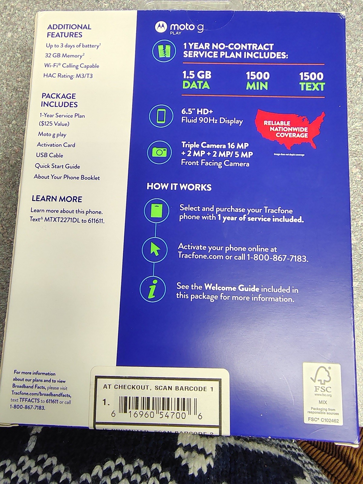 Motorola Moto G Play 2024 Tracfone Smartphone 6.5 16MP 32GB Blue