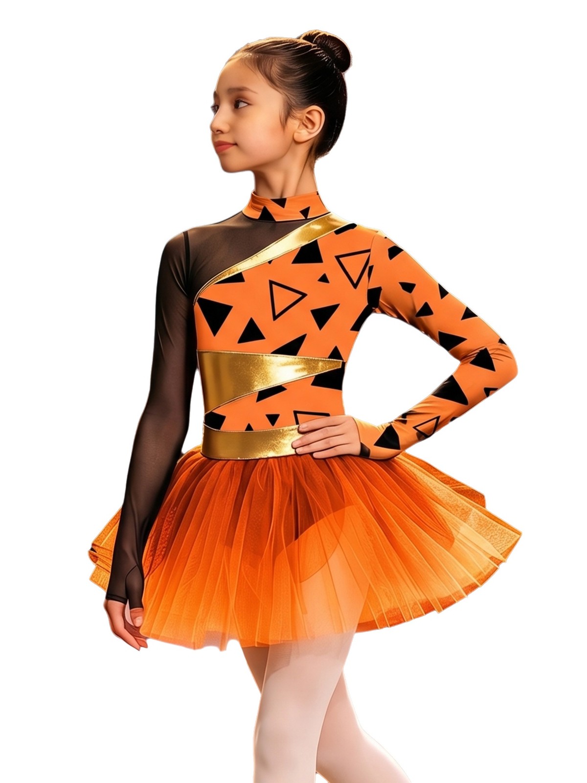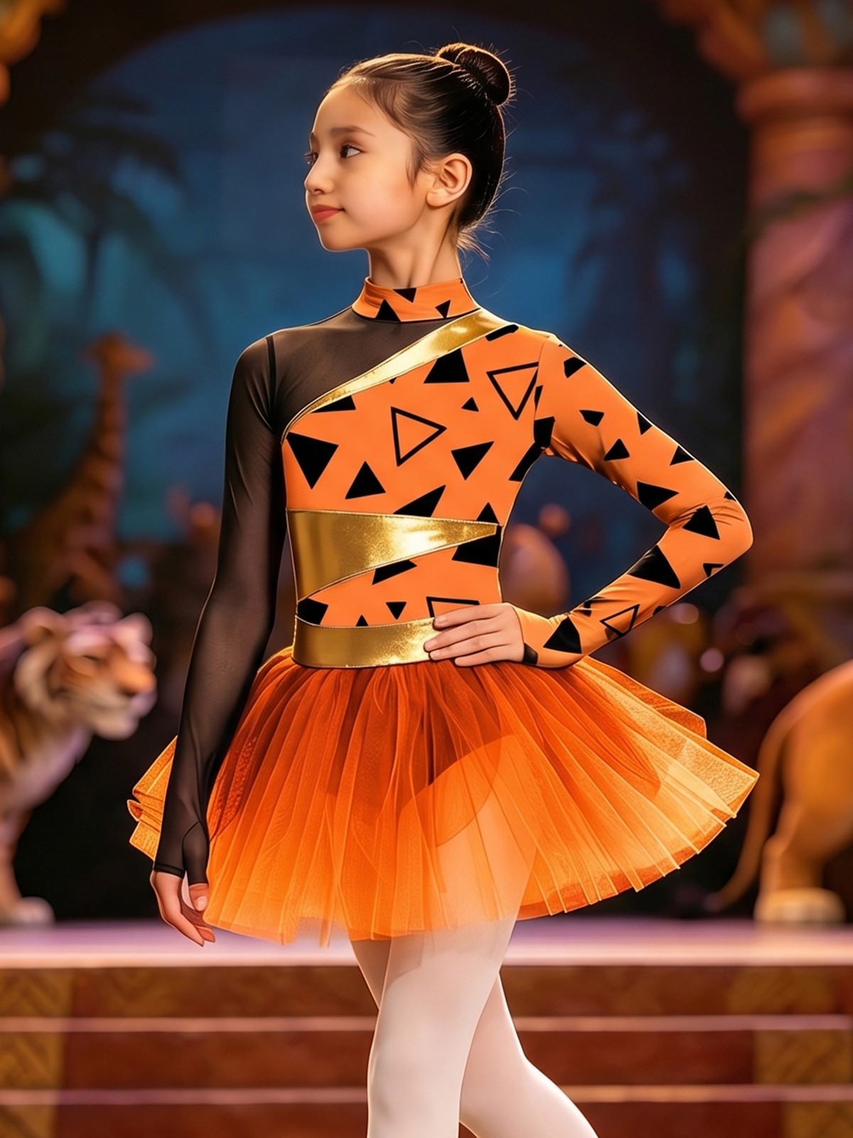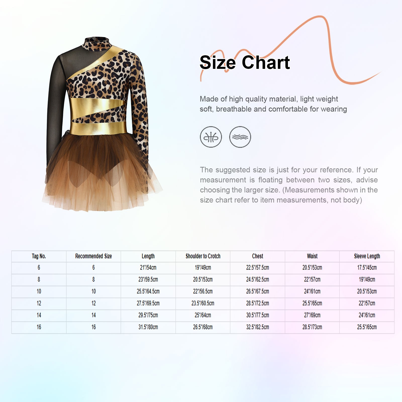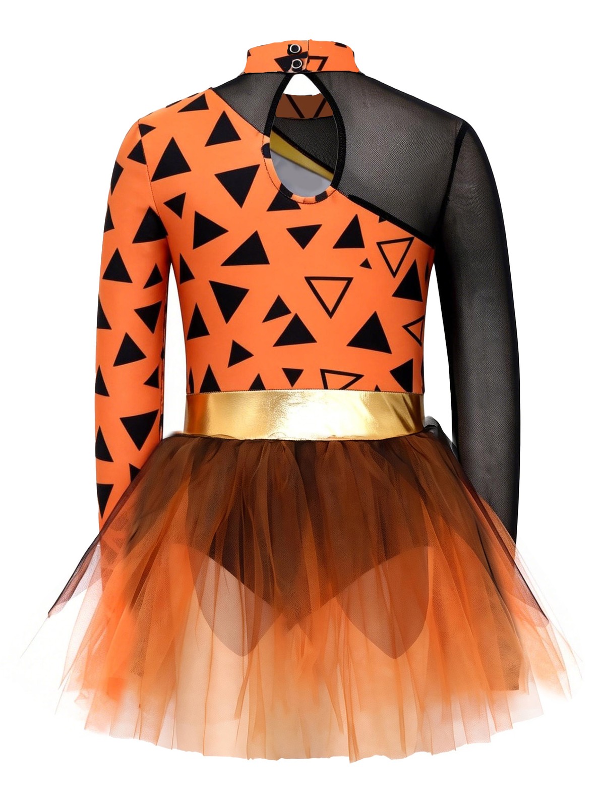 Girls Costume Gymnastic Dress Jazz Mesh Printed Dancewear Figure Skating Show