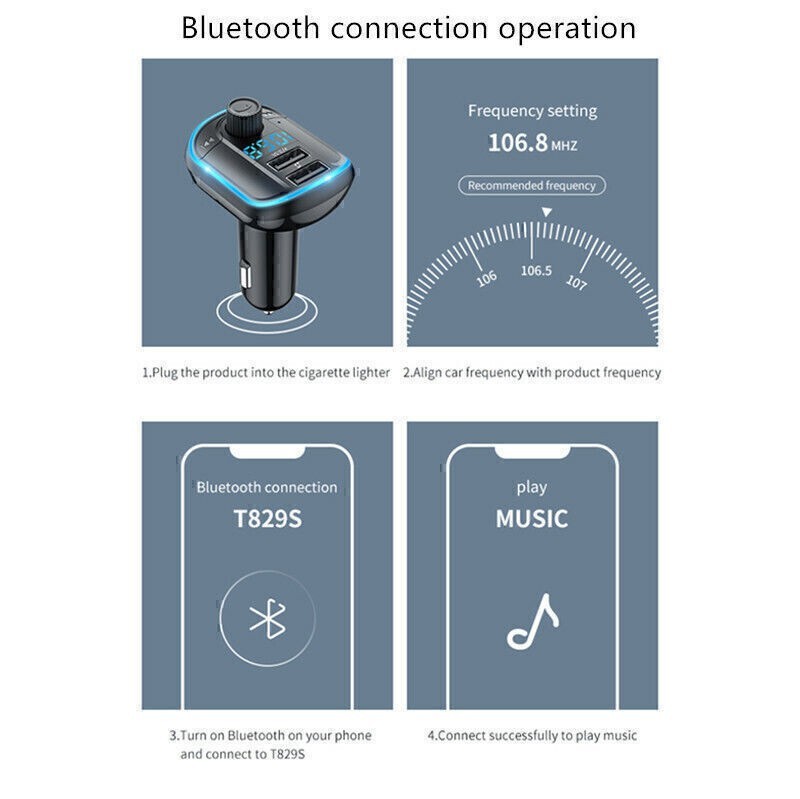 Car Wireless Bluetooth FM Transmitter Radio Adapter Kit MP3 Player 2 USB Charger