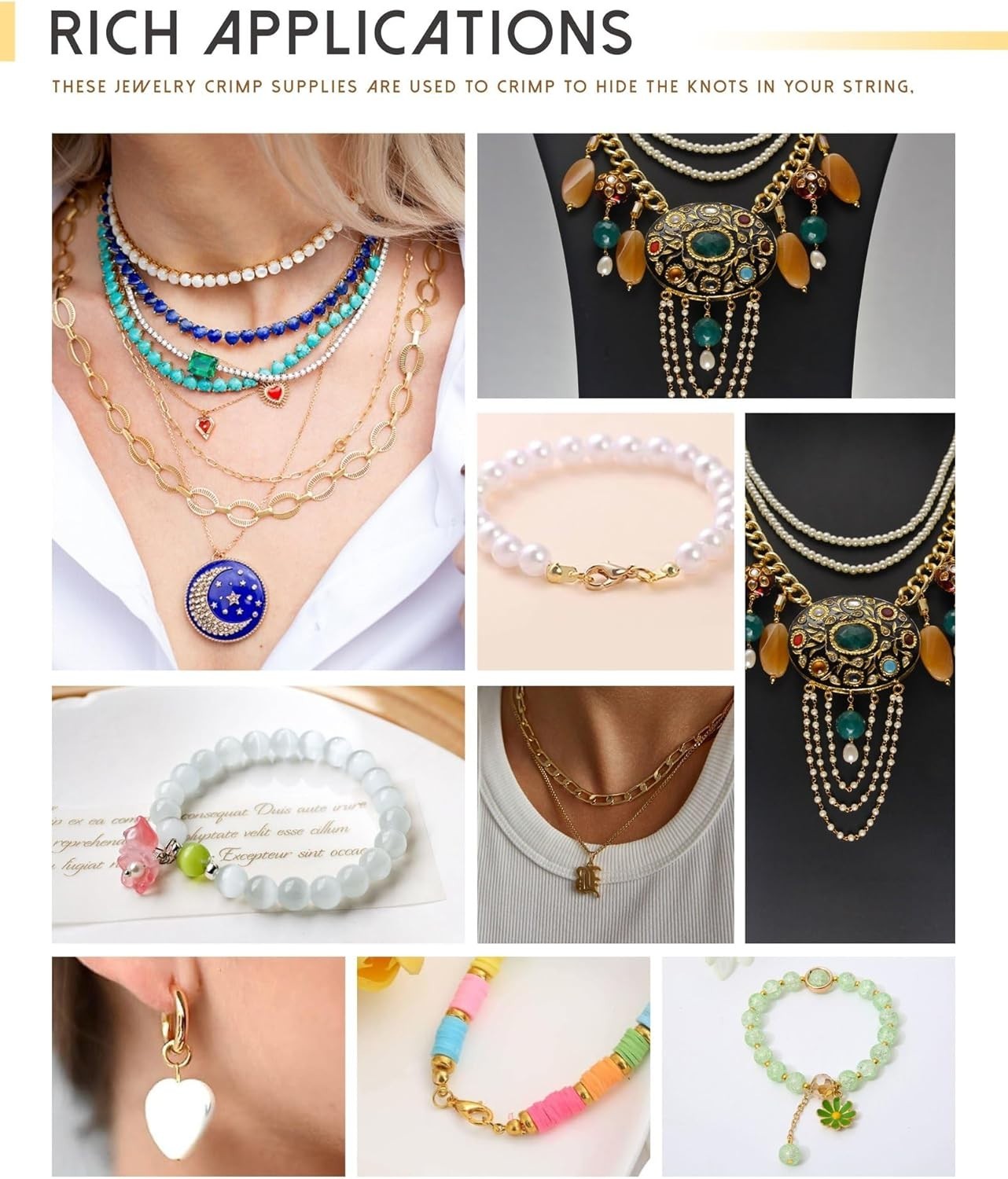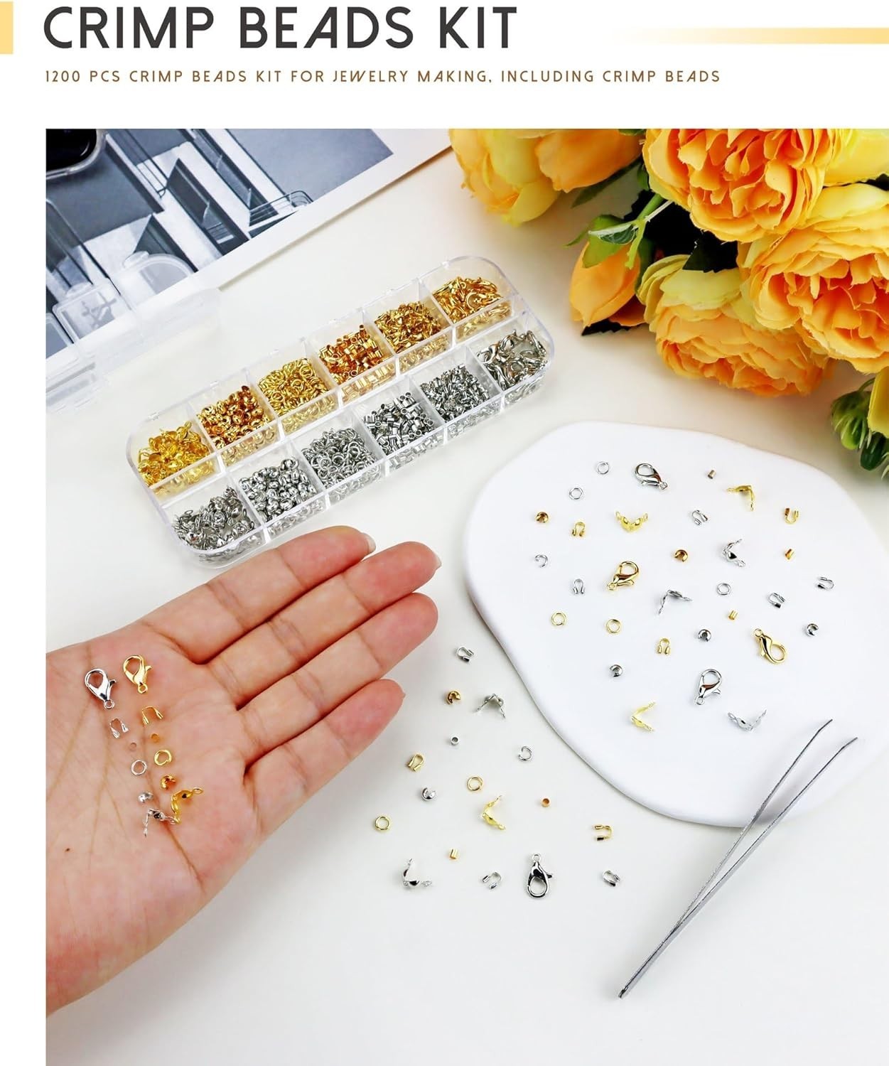 1200 Pcs Crimp Beads Kit for Jewelry Making, Crimp Beads, Crimp Covers, Crimp T