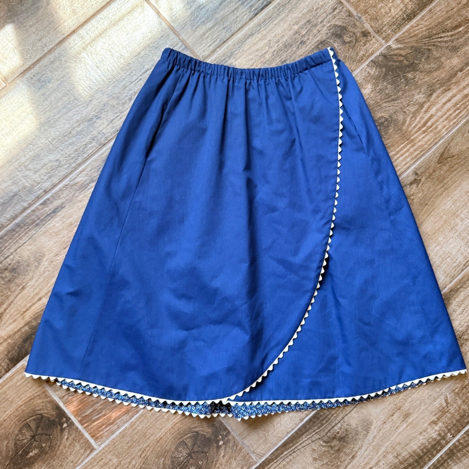 Vintage 70s Prairie Cottagecore Reversible Floral Rick Rack Wrap Skirt, Blue, S