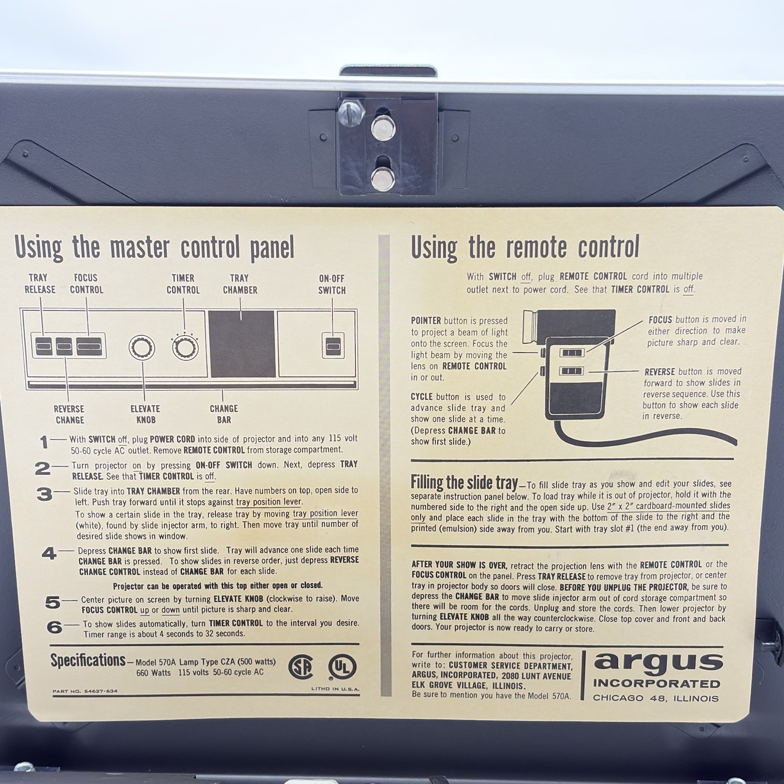 Rare Vintage Argus Electromatic 570 Zoom Automatic Slide Projector Needs Bulb