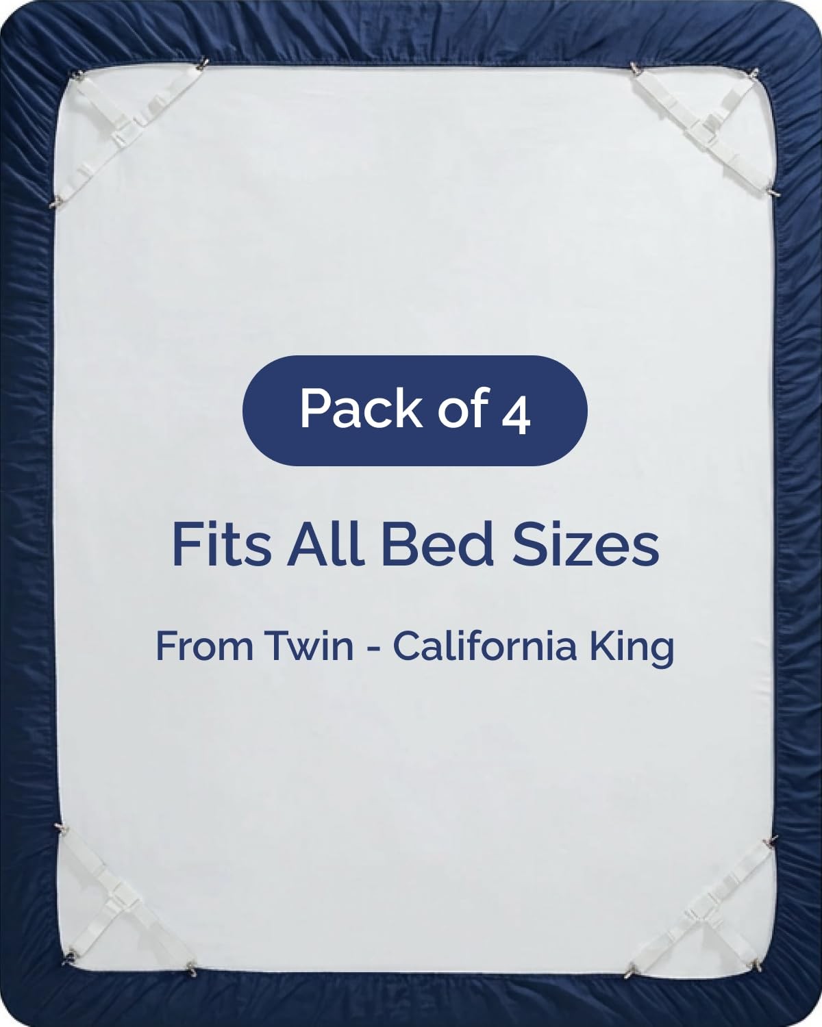 Bed Sheet Holders - Adjustable Elastic Fasteners with Metal Clips - Sheet Cli...