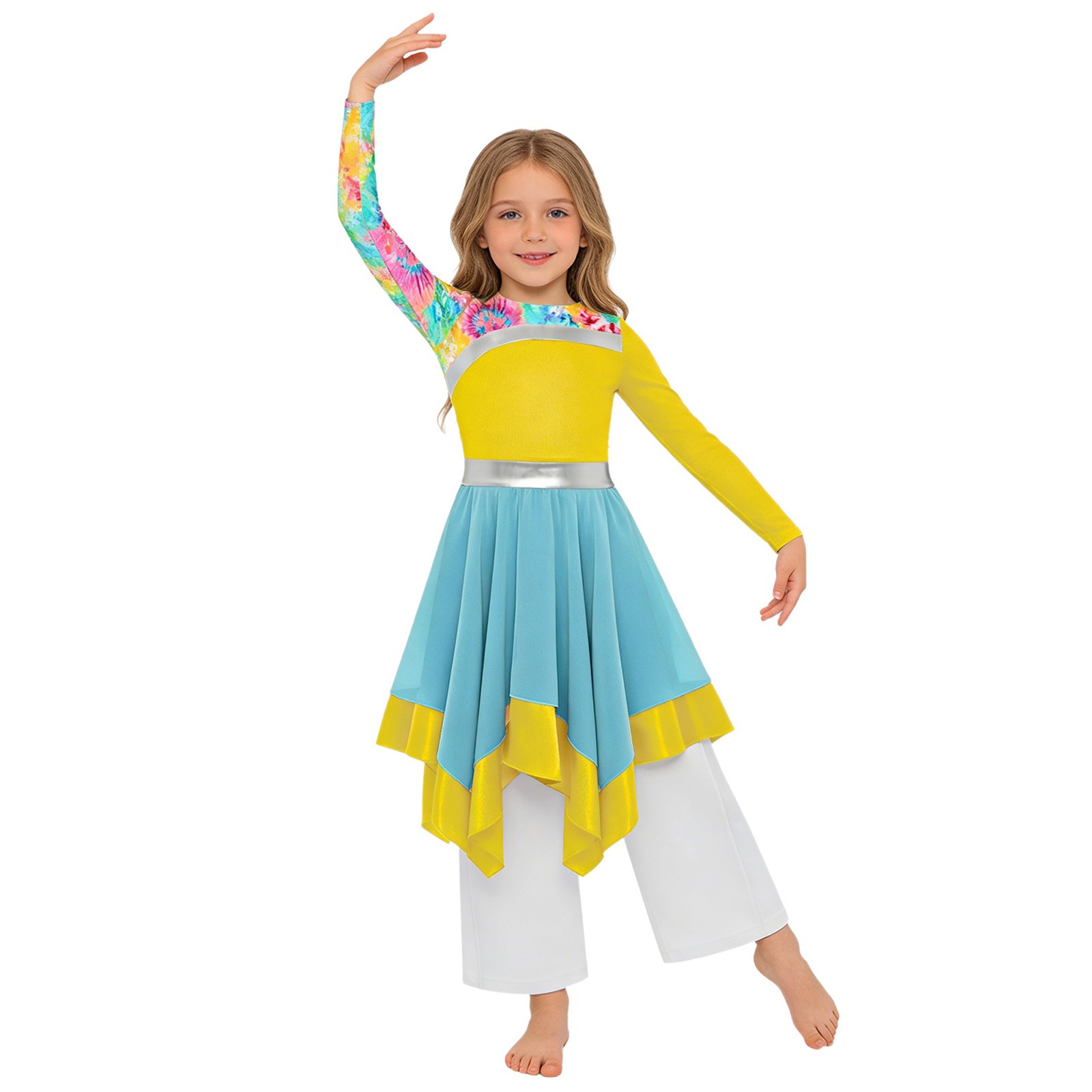 как выглядит Girls Outfit Long Sleeve Set Worship Costume Performance Celebration Gowns Robe фото