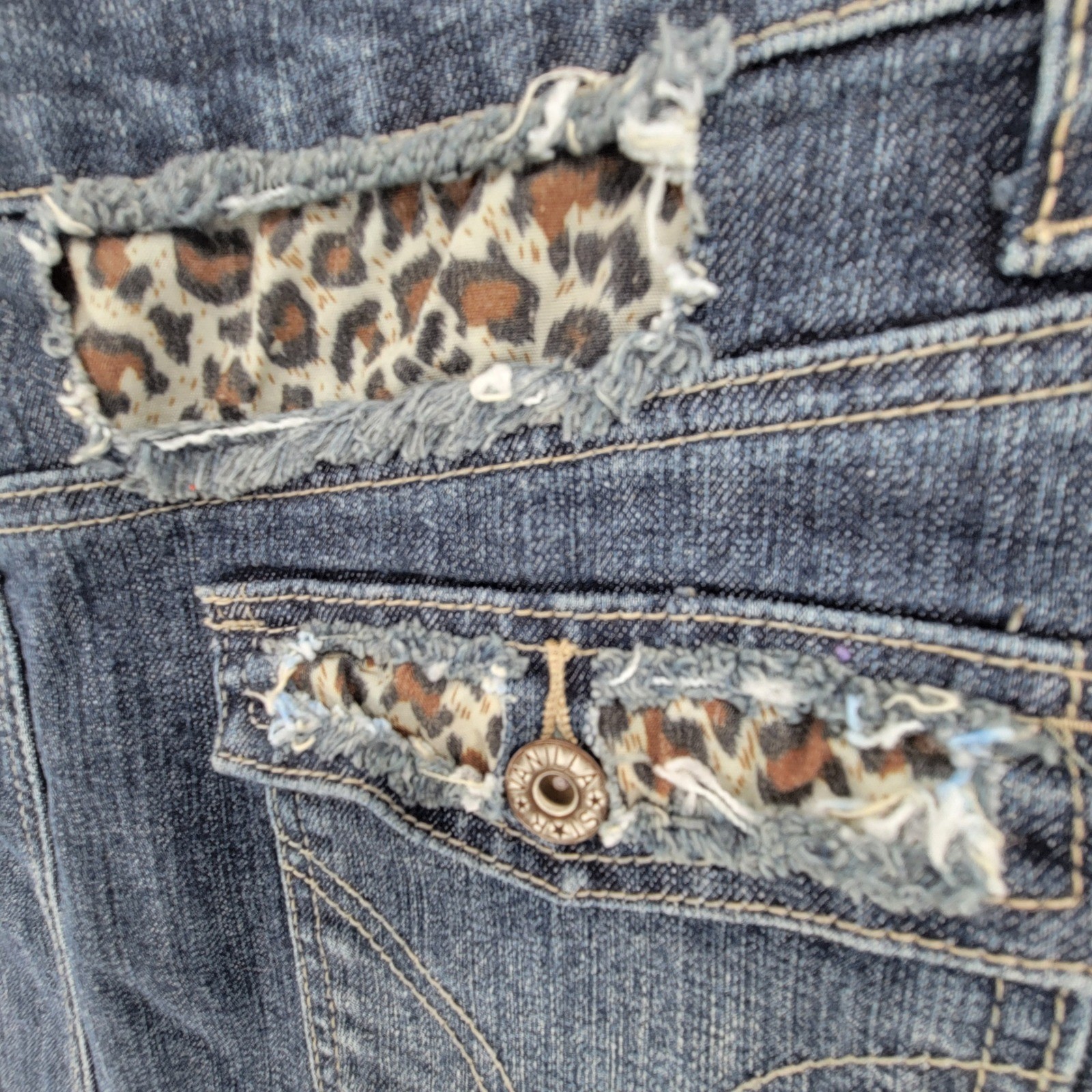 Vanilla Star Womens Denim Micro Mini Skirt Leopard Trim Distressed Size 5