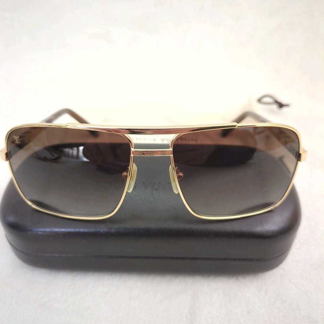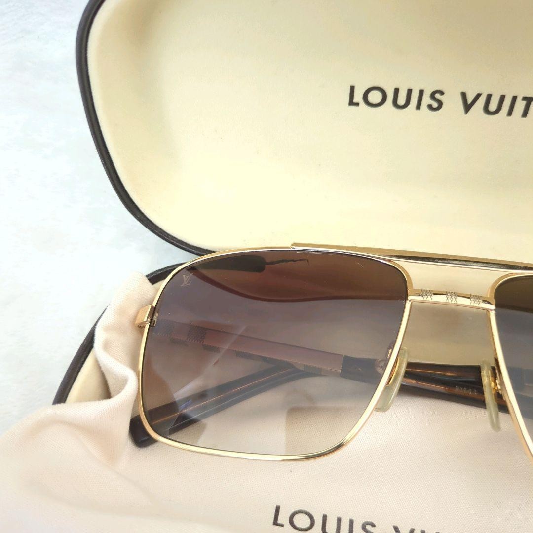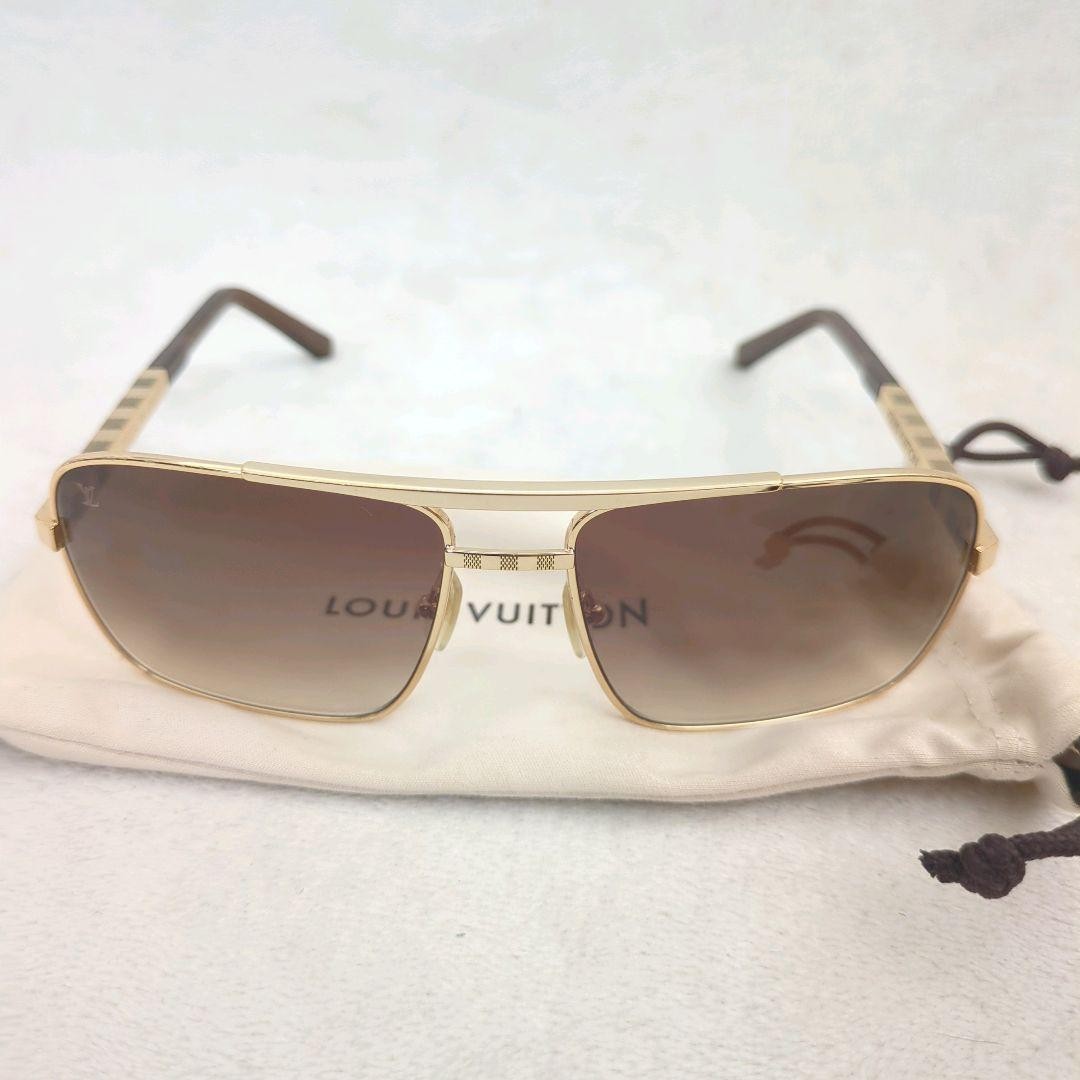 как выглядит LOUIS VUITTON Z0259U Damier Sunglasses Attitude metal Gold Tone LV Gently used фото