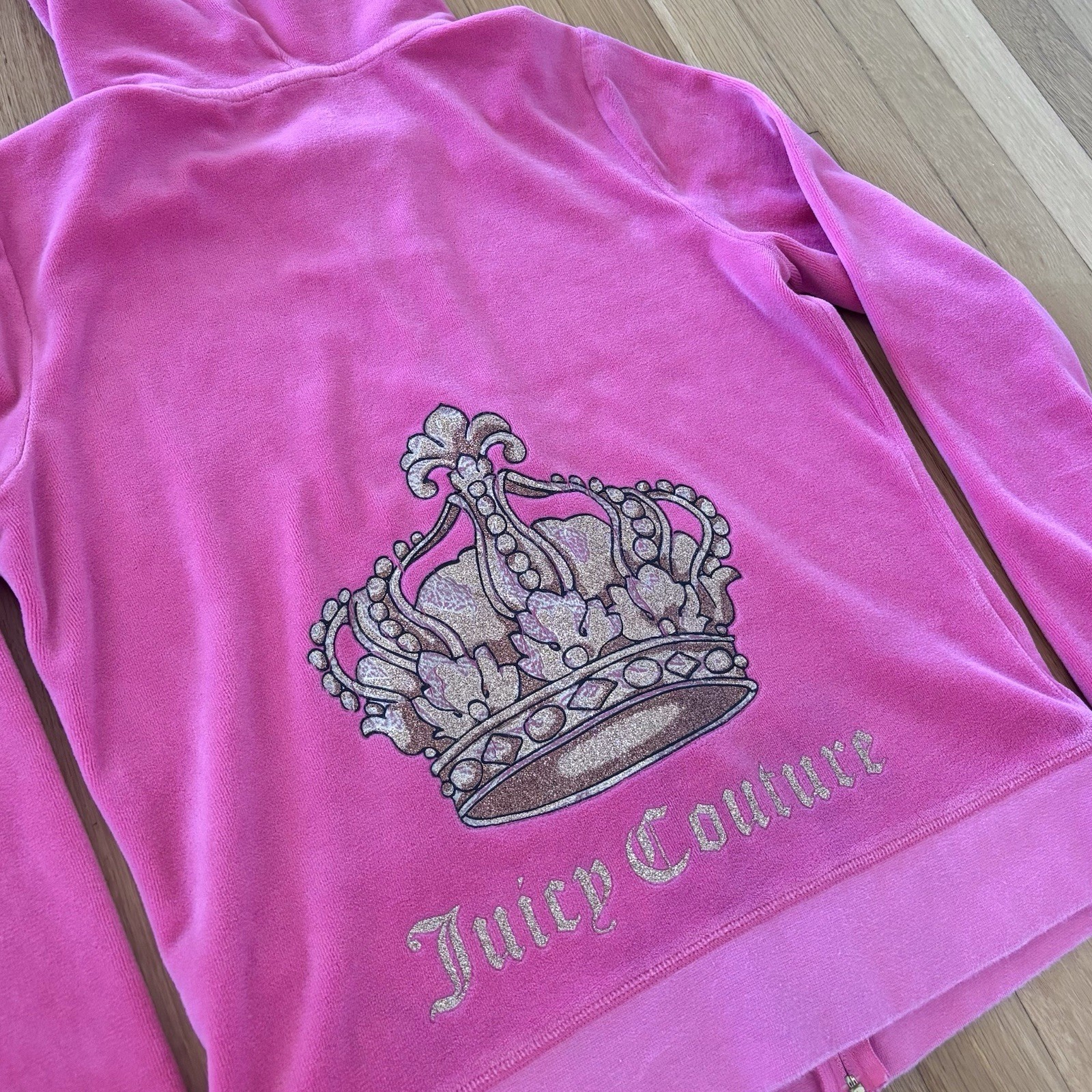 как выглядит Vintage Juicy Couture Velour Jacket Pink Large Crown Y2K Rare Full Zip фото