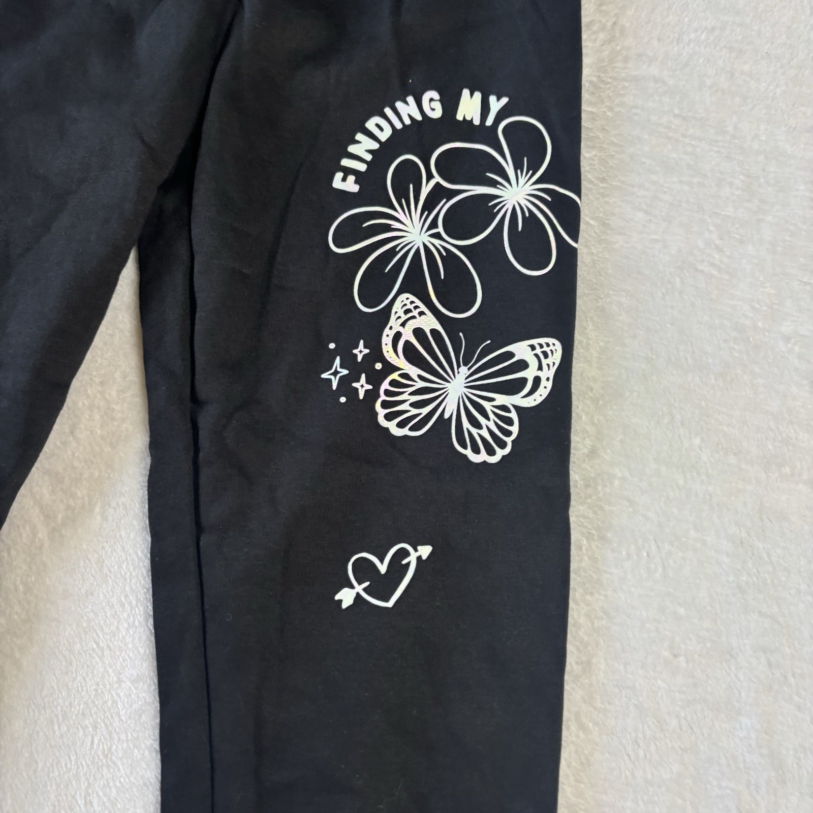 как выглядит Justice Girls Size S 7/8 Black Joggers Finding My peace фото
