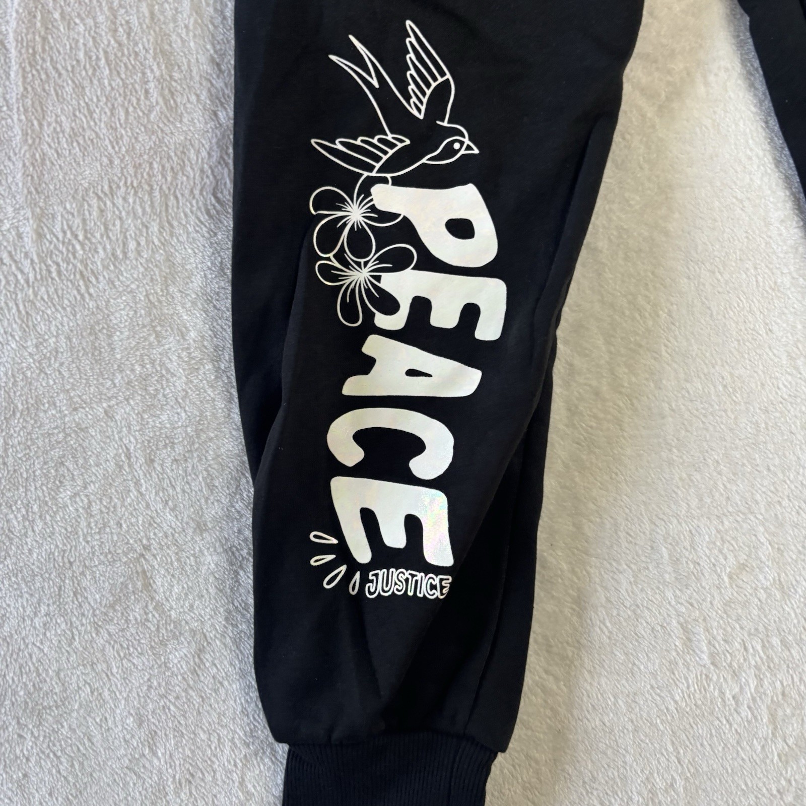 Justice Girls Size S 7/8 Black Joggers Finding My peace