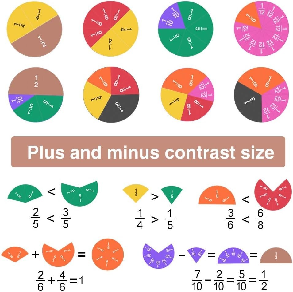 134 Pcs Magnetic Fraction Tiles Fraction Circles - Math Manipulatives for P...