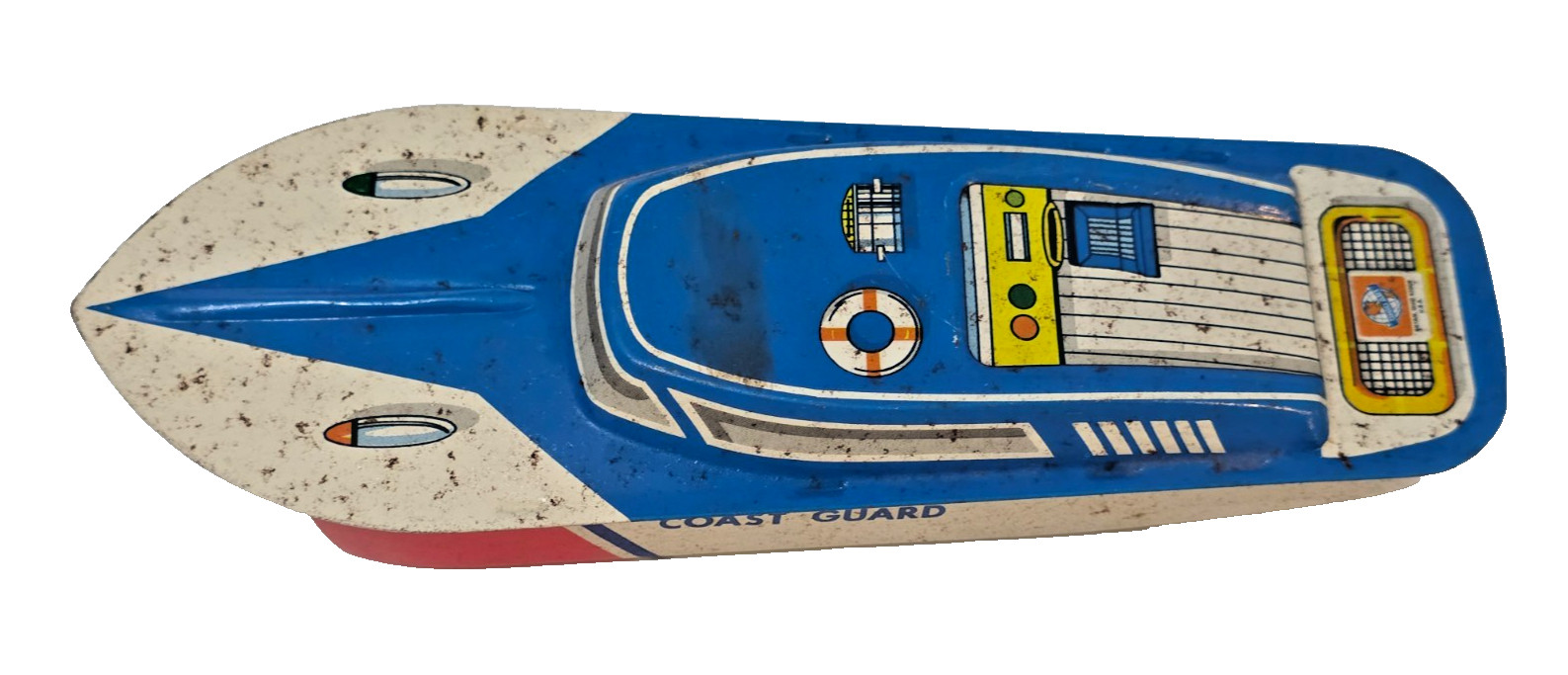 Vintage Tin Metal Coast Guard Boat Toy 8.5 98-F175 Ohio Art - USED Light Rust