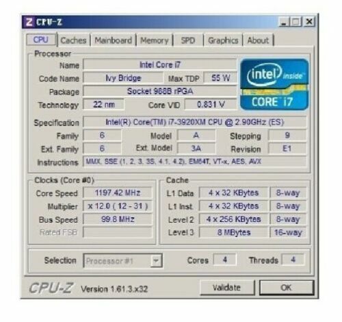 как выглядит Intel I7-3920XM SR0T2/SR0MH 2.9-3.8G/8M Socket G2 rPGA988B CPU AW8063801009606 фото