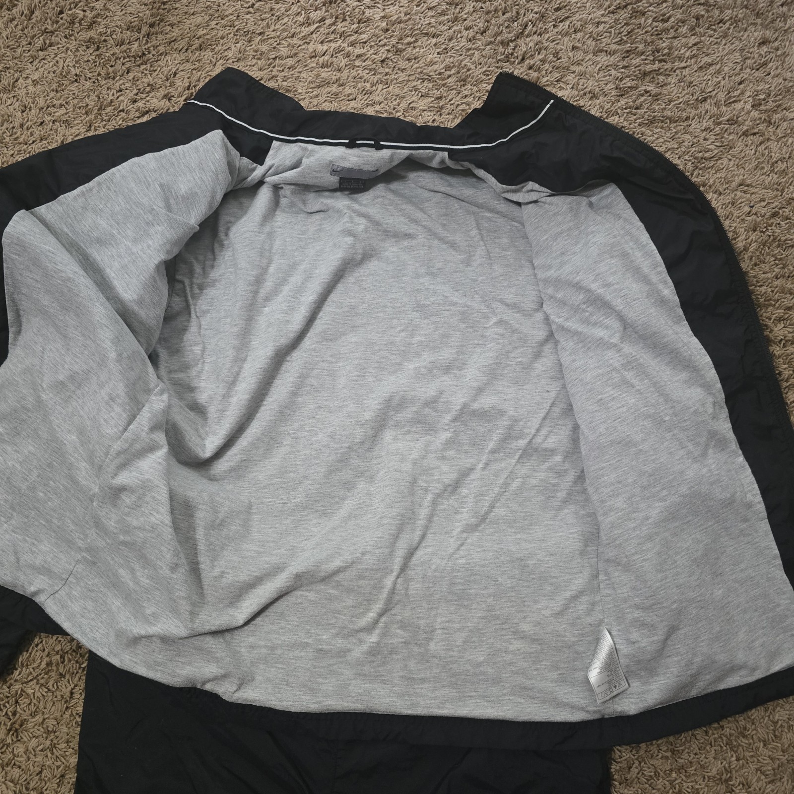 как выглядит Vtg 90 s Nike Navy Blue Windbreaker Track Suit Jacket Pants Silver Tag Stripe L фото