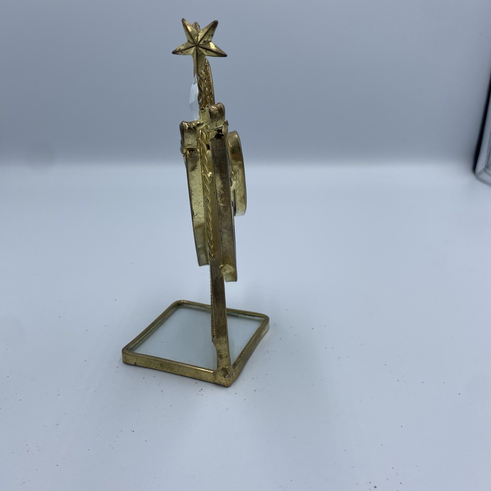 как выглядит Vintage Cobalt Blue Stained Glass Standing Angel Clear Wings Holding Star фото