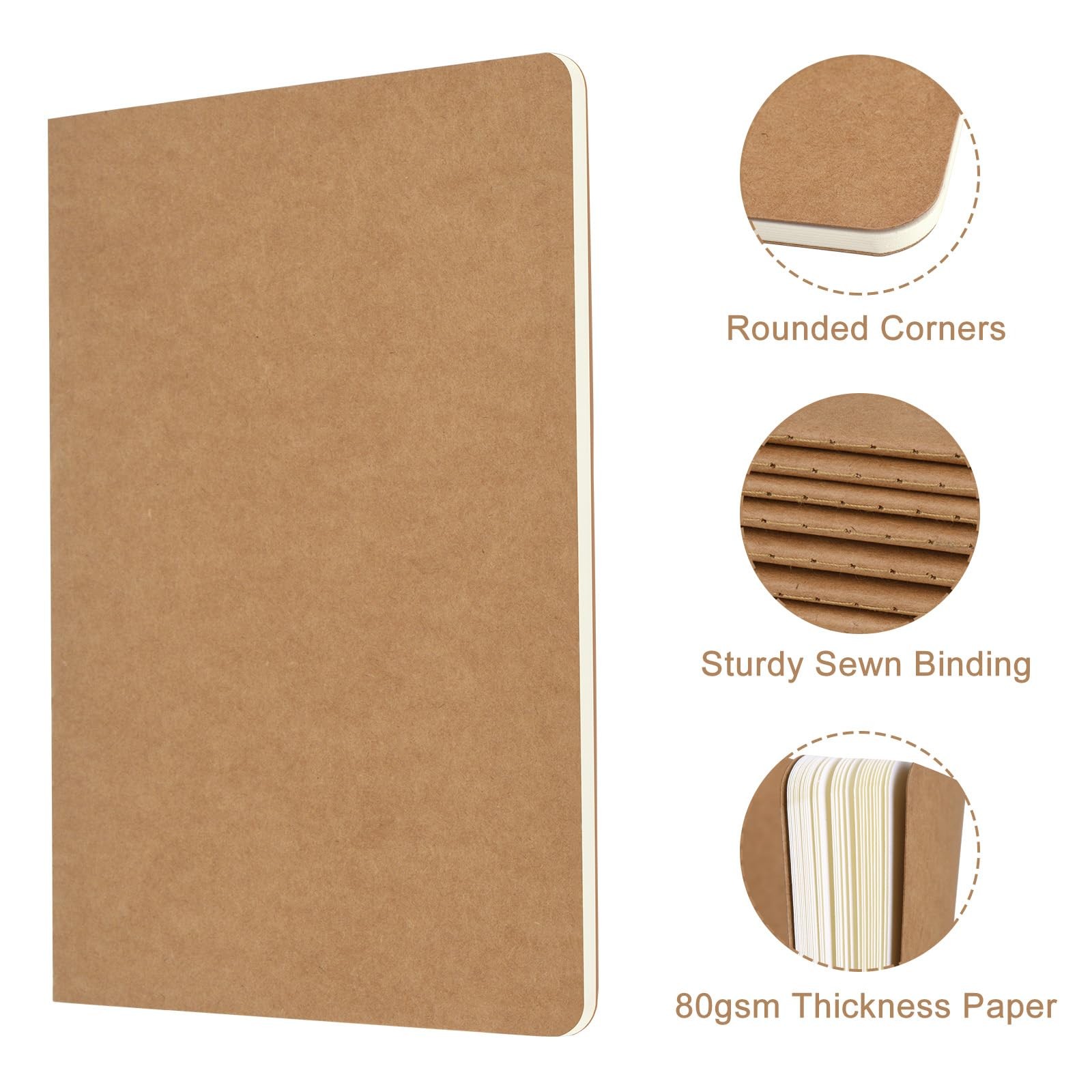 ZCZN 8 Pack A5 Kraft Notebooks Bulk, 8.15x5.5 Inches Lined Paper kraft