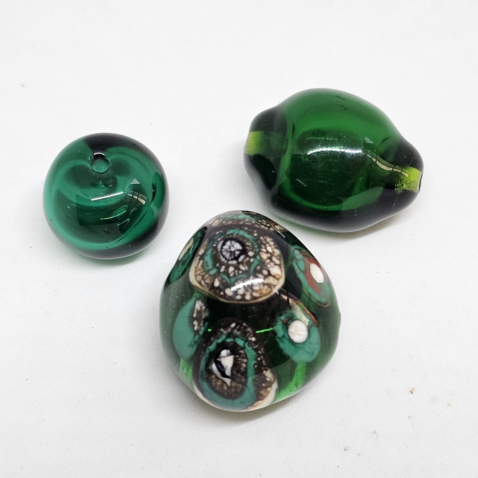как выглядит Lot Of 3 Handmade Artisan Lampwork Glass Beads Green Art Jewelry Making Crafts фото