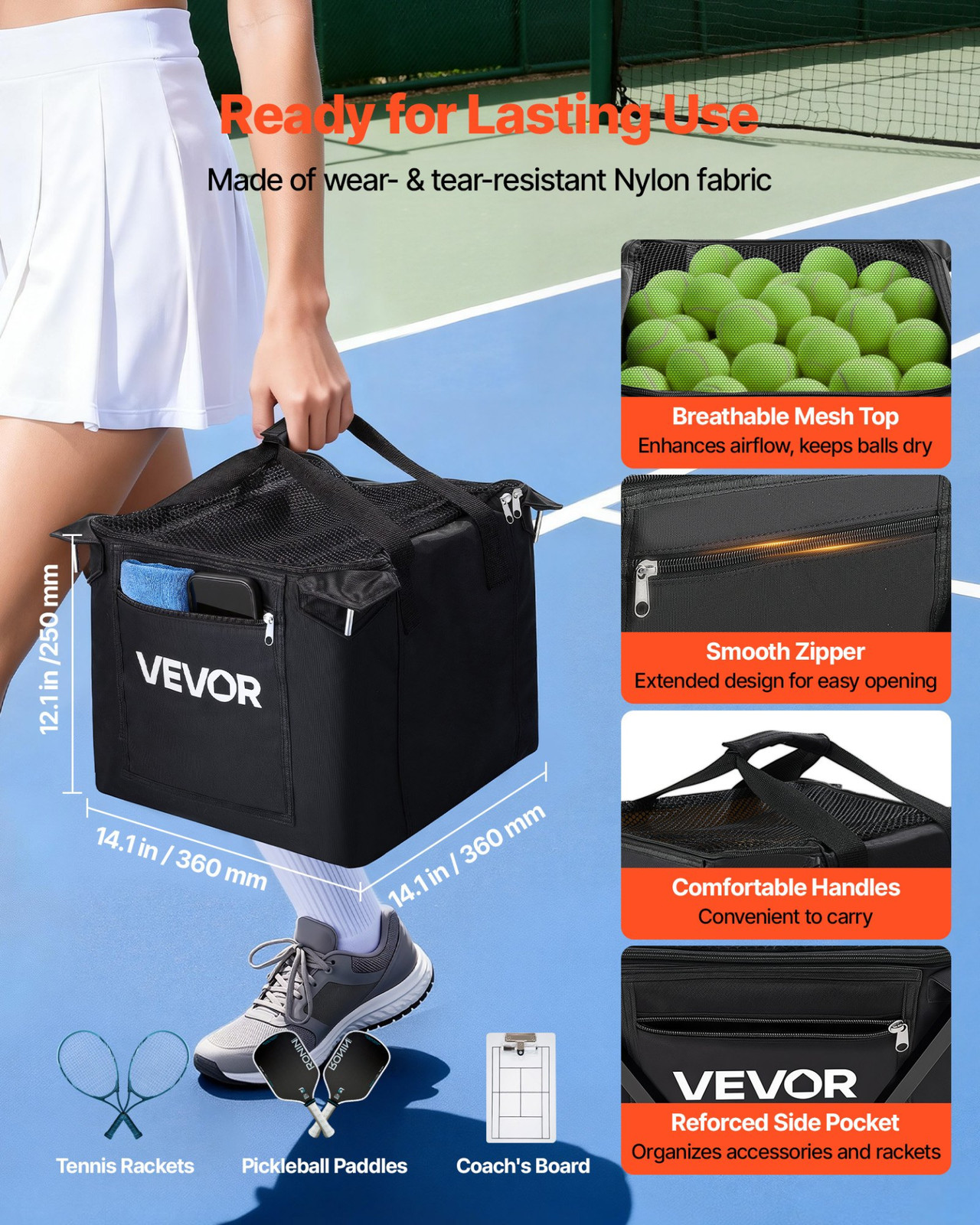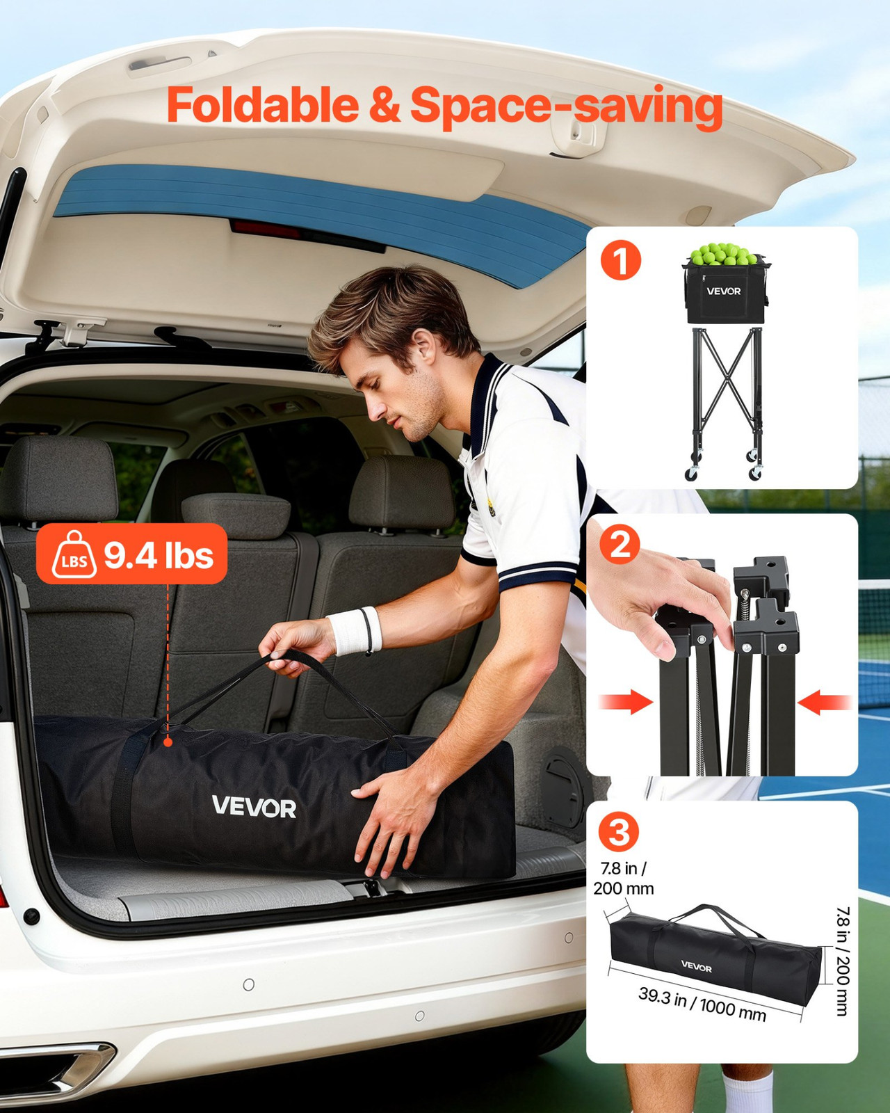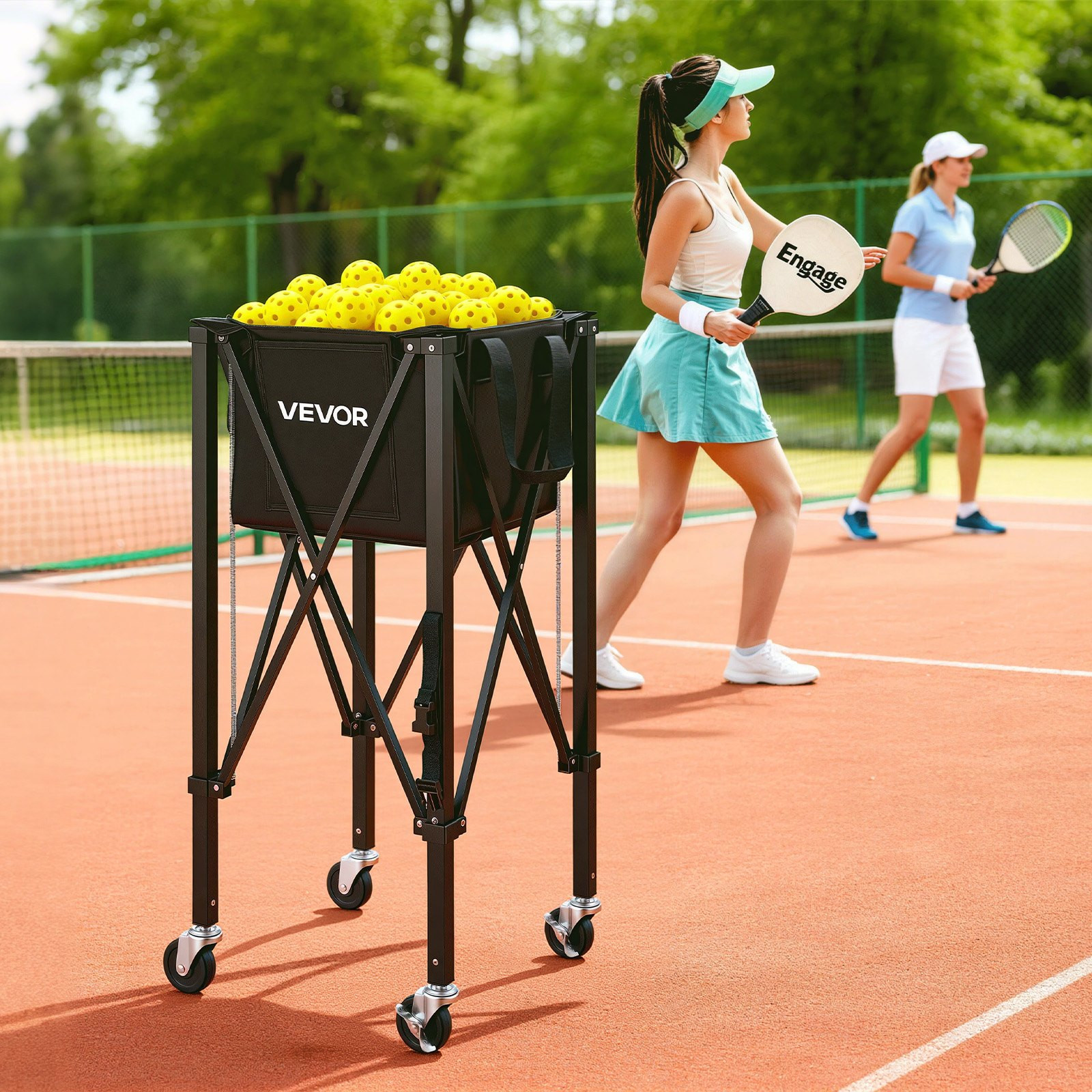 Tennis Ball Hopper w/ Wheels Holds 120 Balls Foldable Pickleball Cart