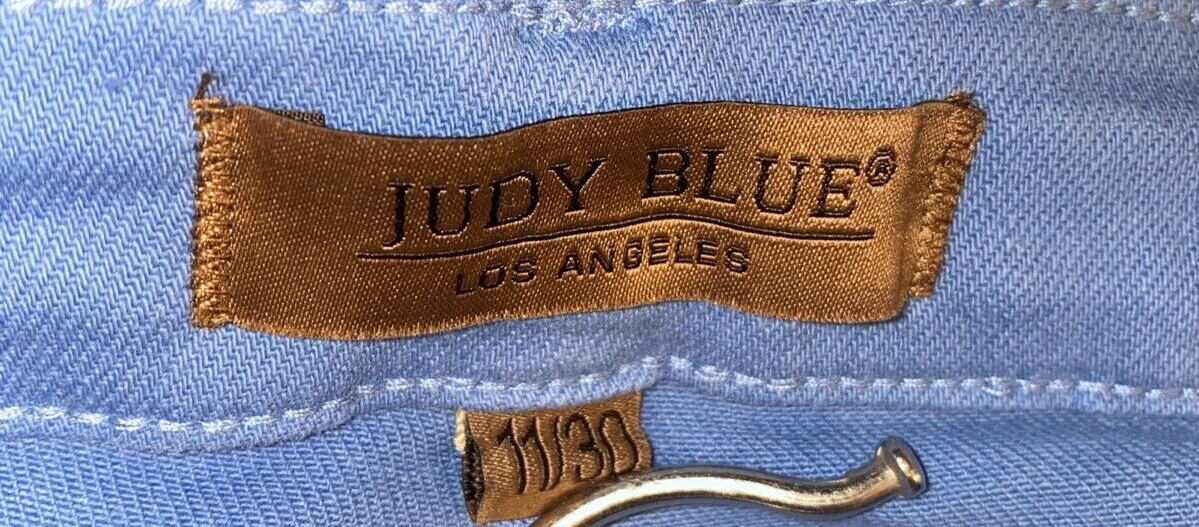как выглядит Judy Blue Crop Frayed Jeans Size 11/30 Garment Dyed Blue High Waist Stretch фото