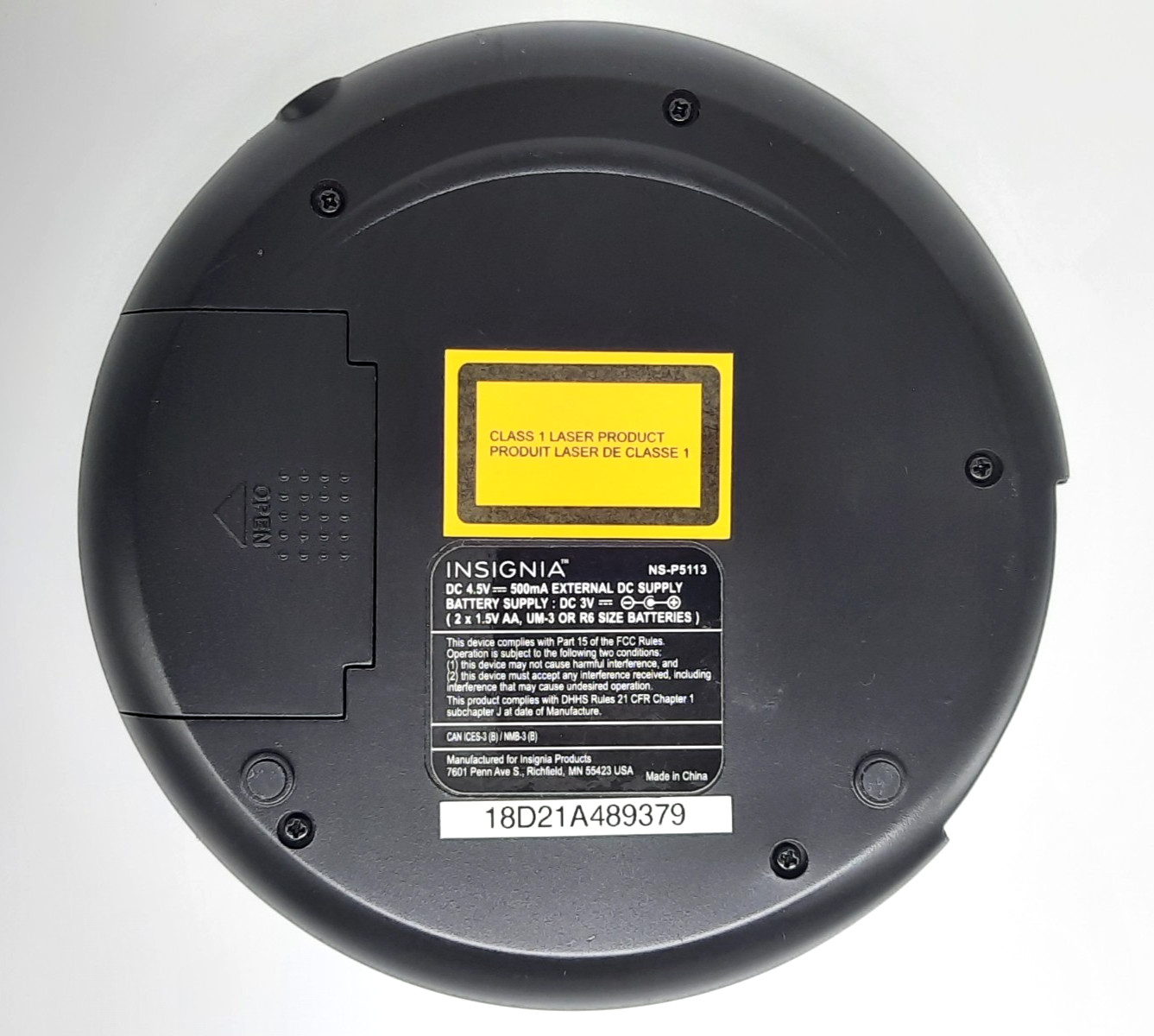 Insignia NS-P5113 Portable CD/MP3 Player FM Tuner w/ AC Adapter, Tested Working