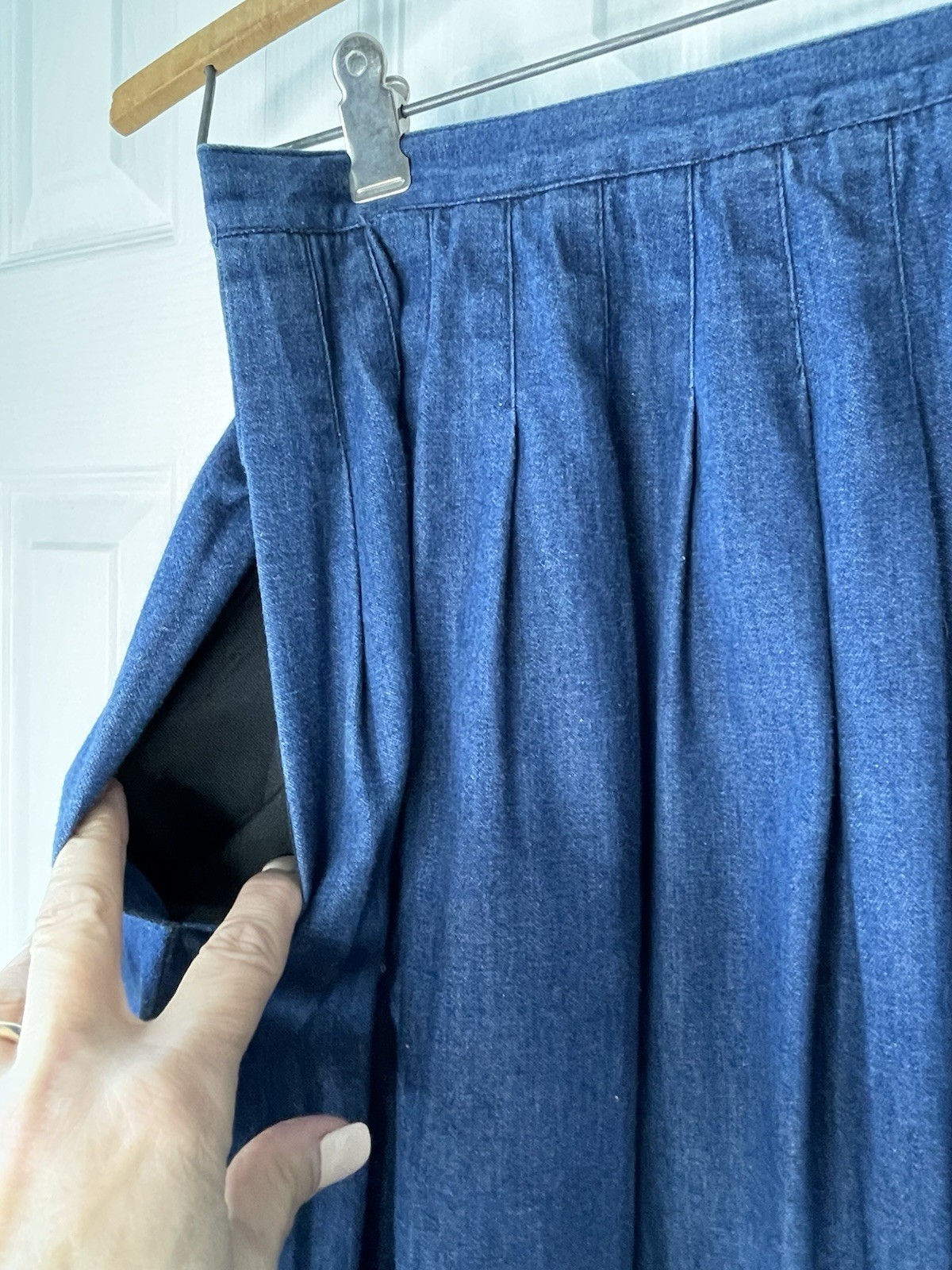 Vintage Denim Women s S Pleated Maxi Skirt Side Pocket/zip Cottagecore Granny