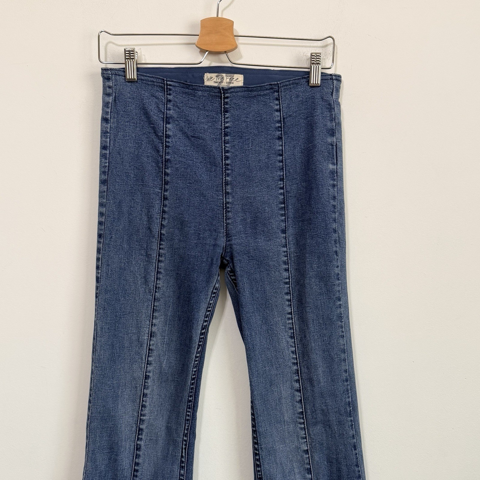 We The Free People Pull On Flare Jeans Size 27 Blue Seamed Denim 29x31 Boho Pant