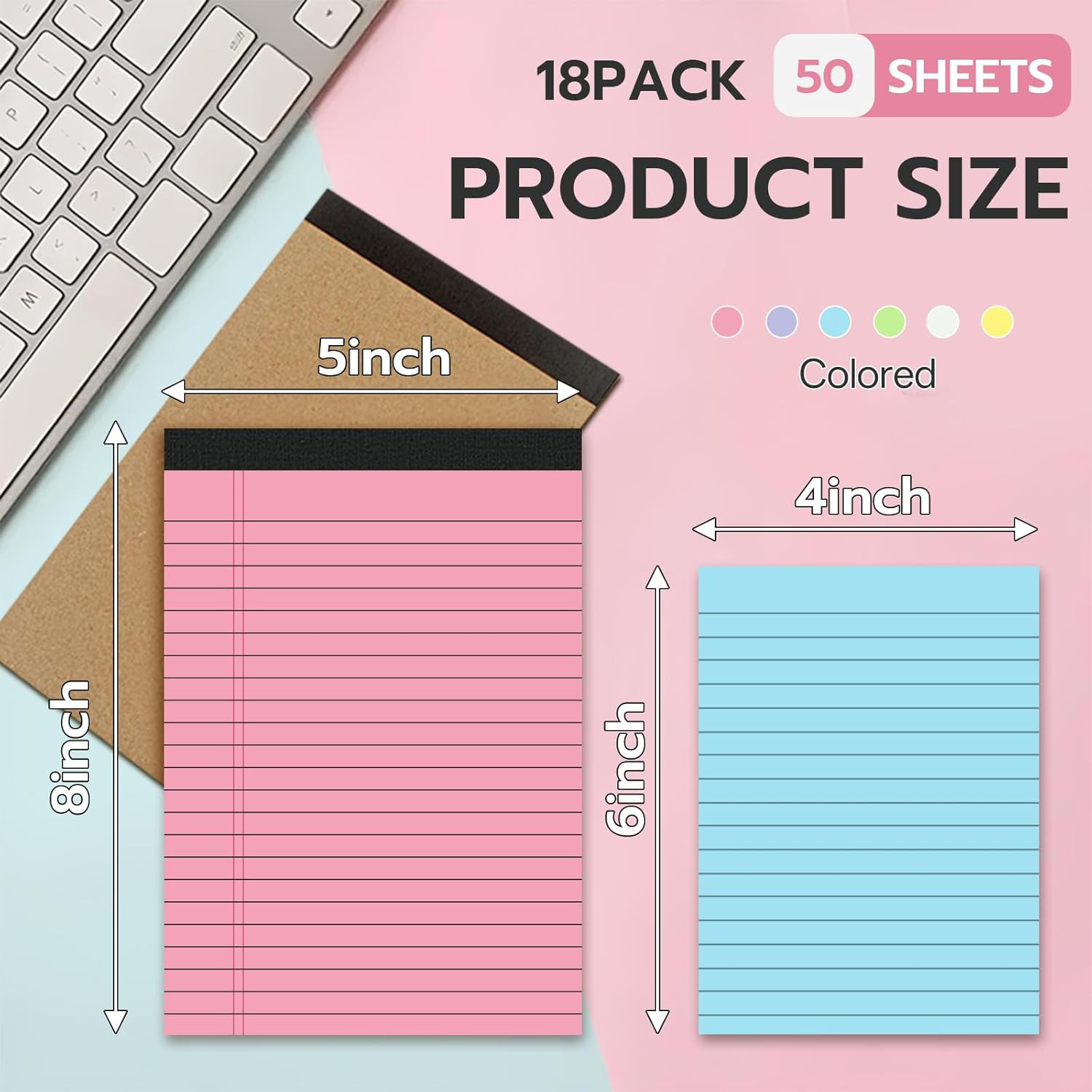 18Pack Note Pads 5X8, Colored Legal Pads 5X8 College Ruled Notepad, Note Paper 5