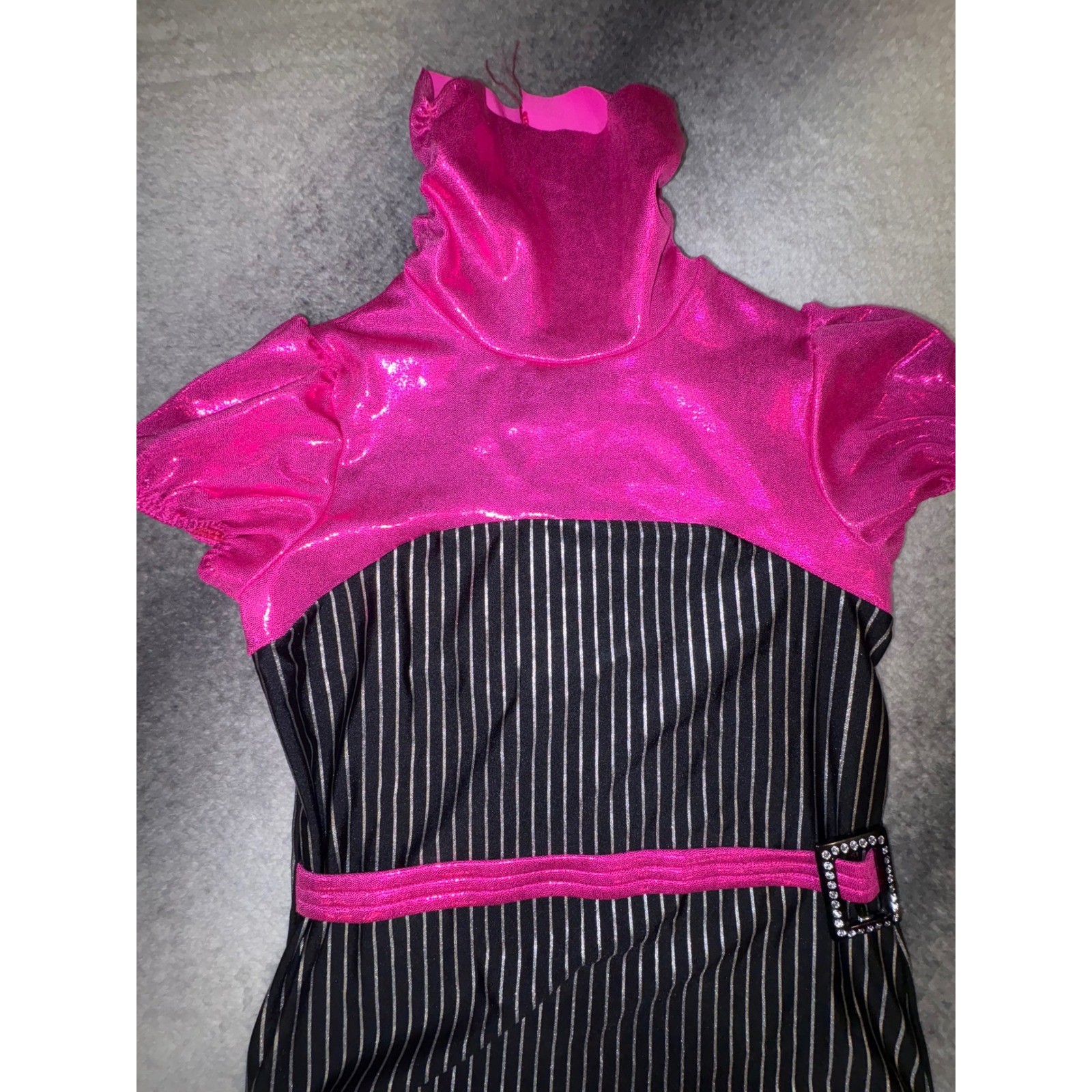 A3 Curtain Call Costumes Pink Black Pinstripe Dance Top Rhinestone Buckle CLA