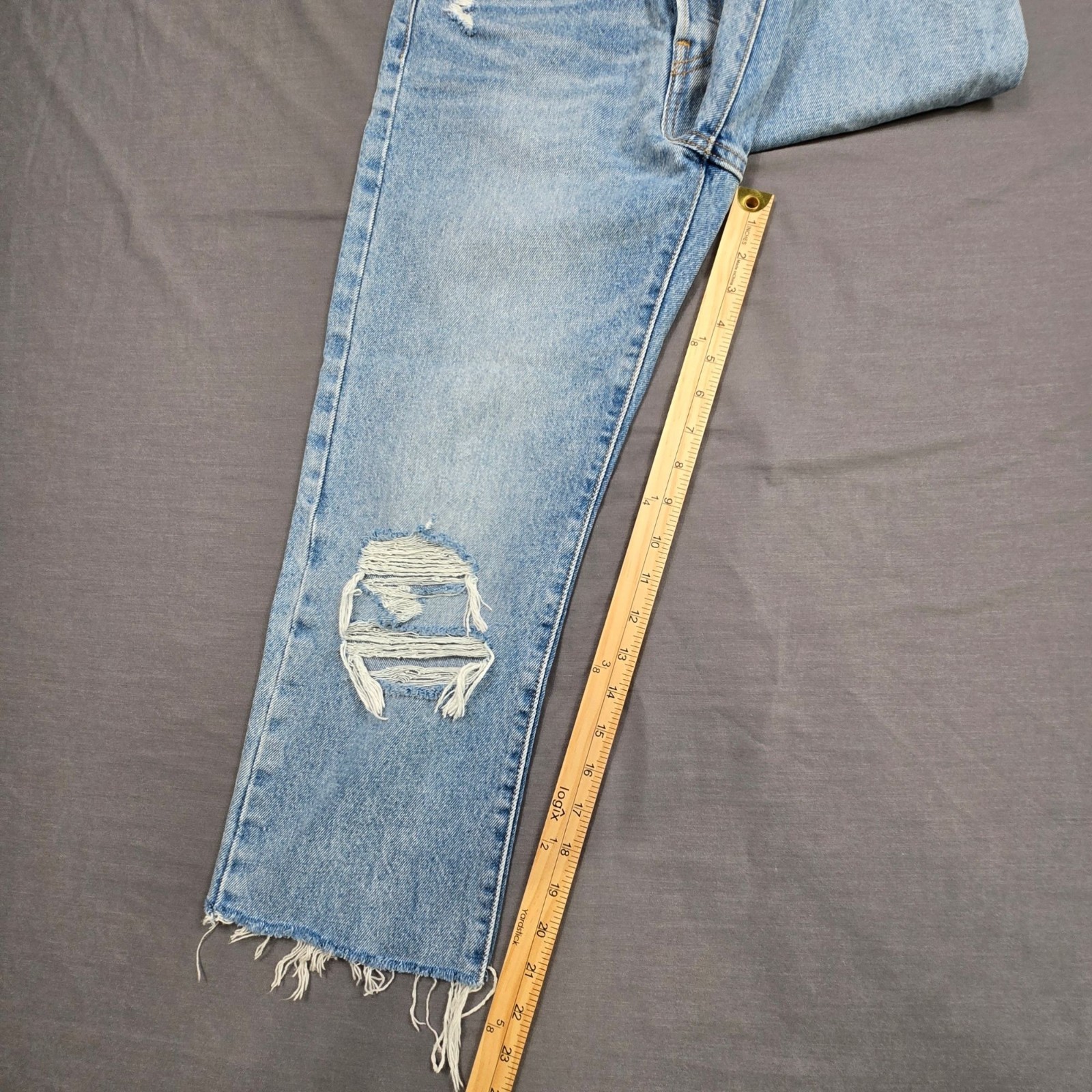 Levis 27 Womens Wedgie Straight Jeans Light Wash Distressed Denim Button Fly