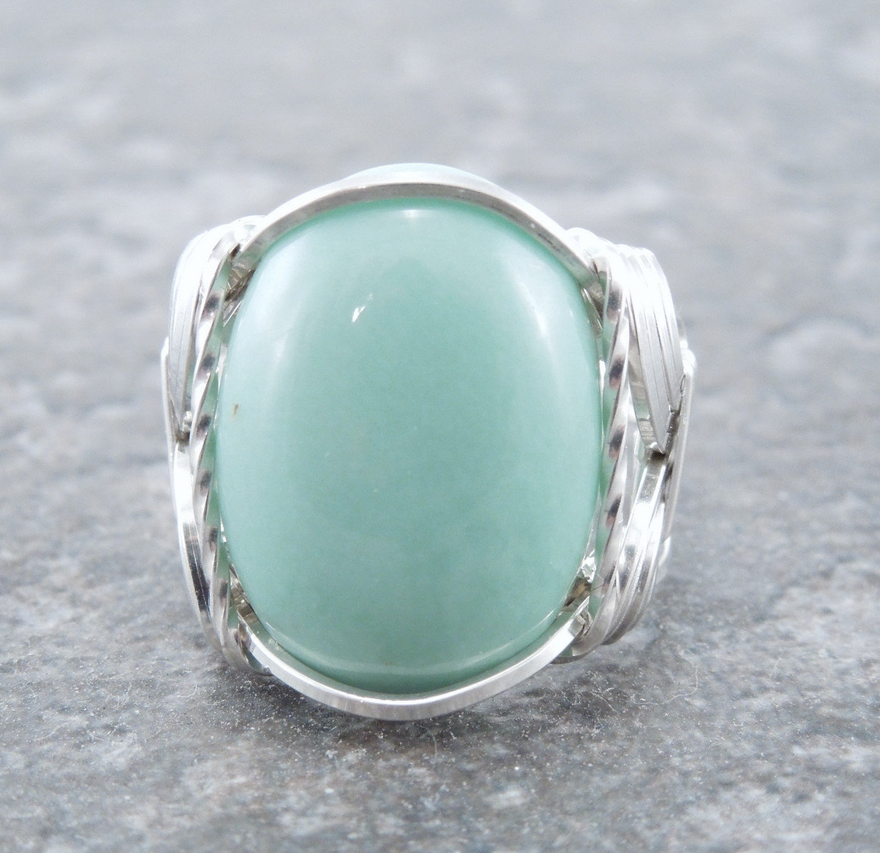 Sterling Silver Wire Wrapped Variscite Cabochon Ring