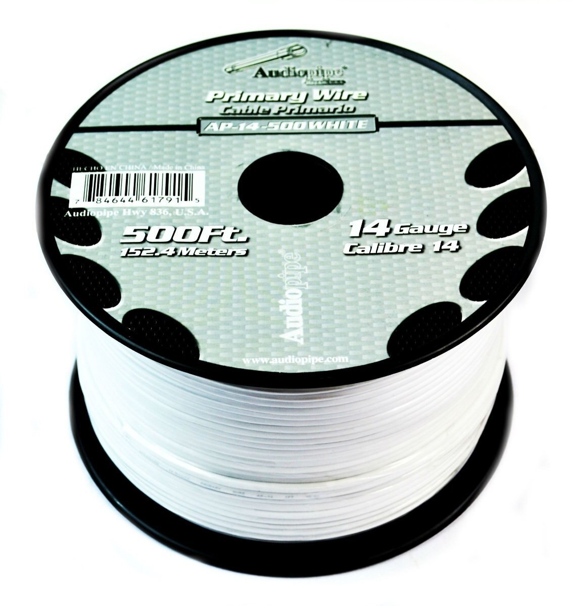 14 Gauge Car Audio Primary Wire 500ft White Remote, Power/Ground Electrical
