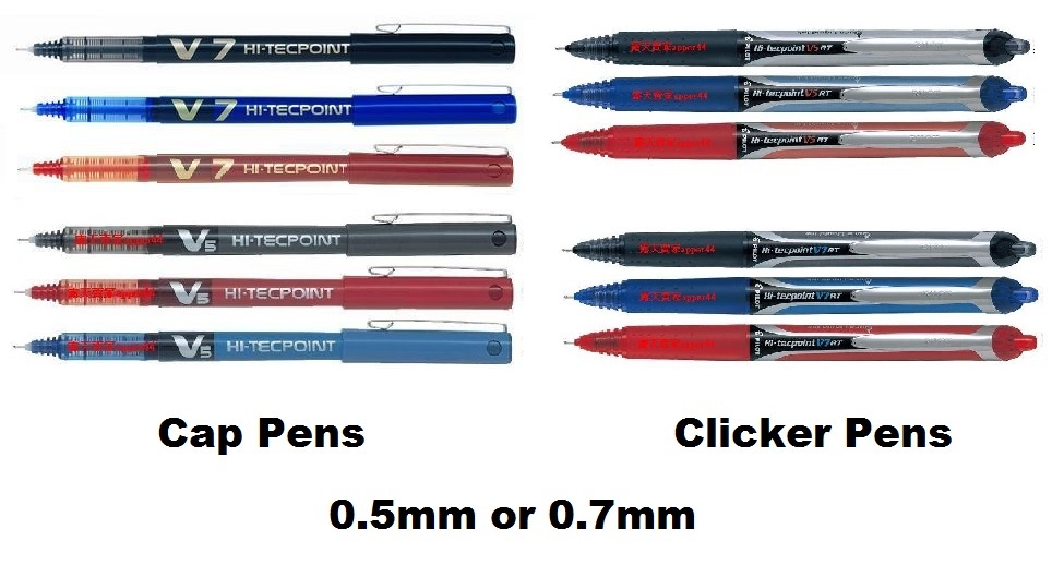 Pilot V5 V7 Hi-Tecpoint Extra Fine 0.5mm CHOOSE PEN COLOR Qty Black Blue 0.7mm