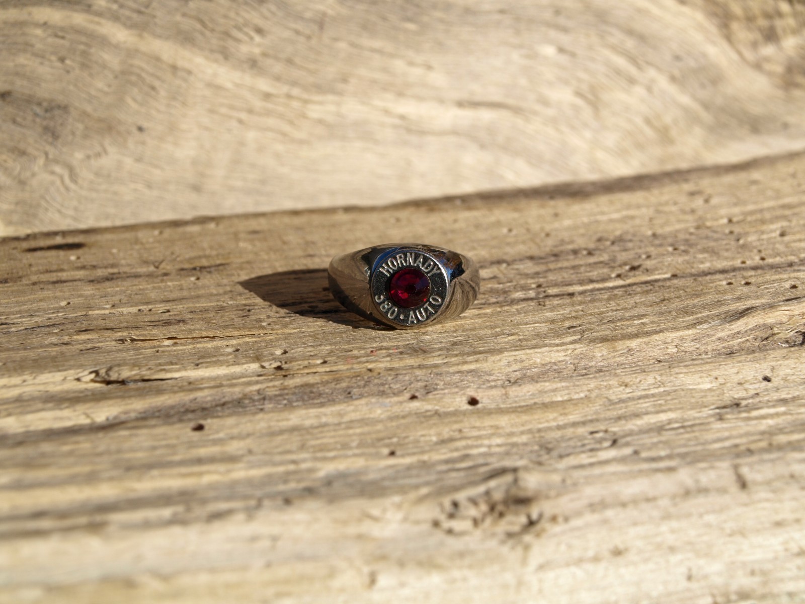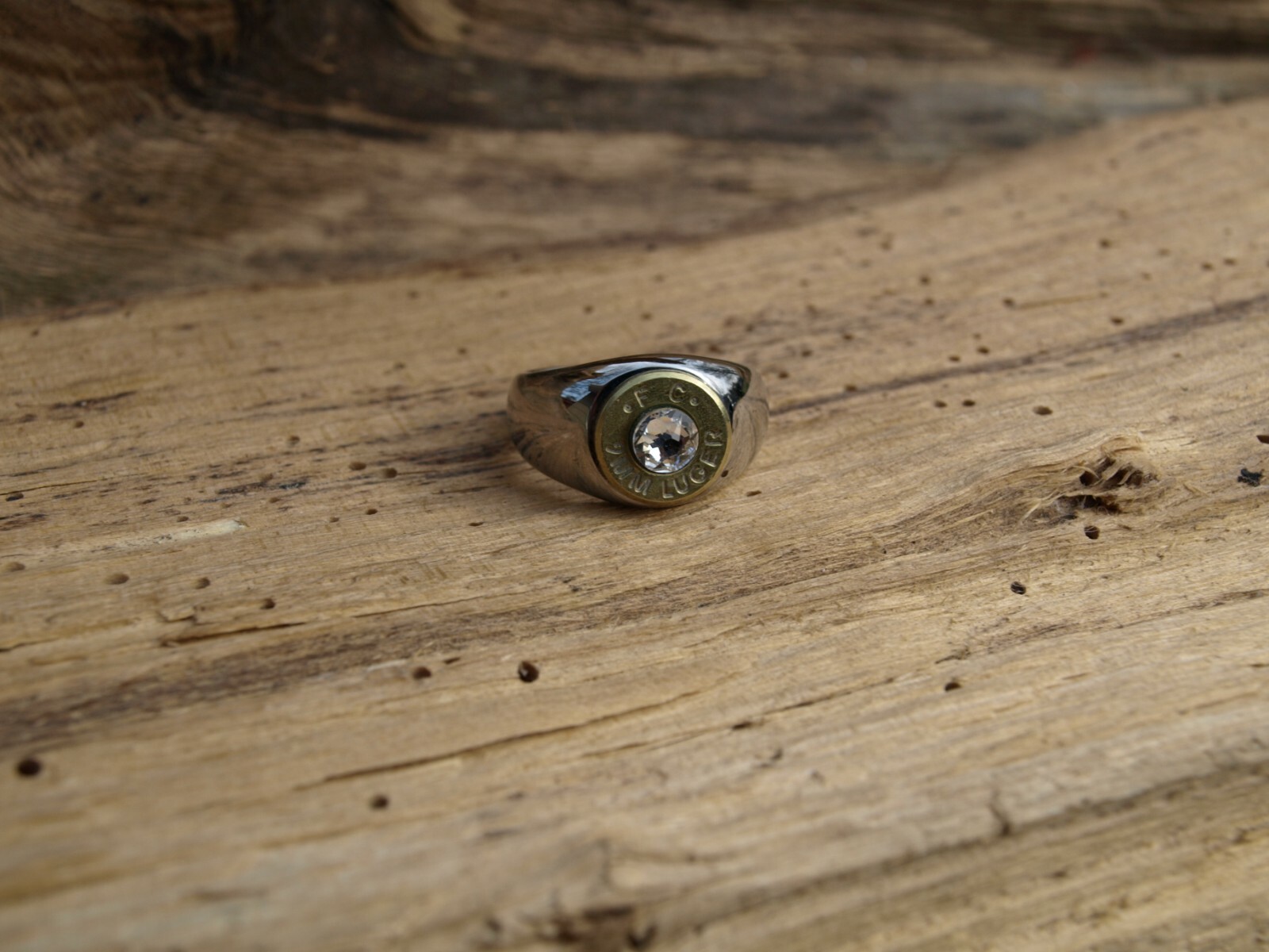 Thin Band Stainless Steel BULLET Ring -NICKEL 380 Optional Glass Crystal