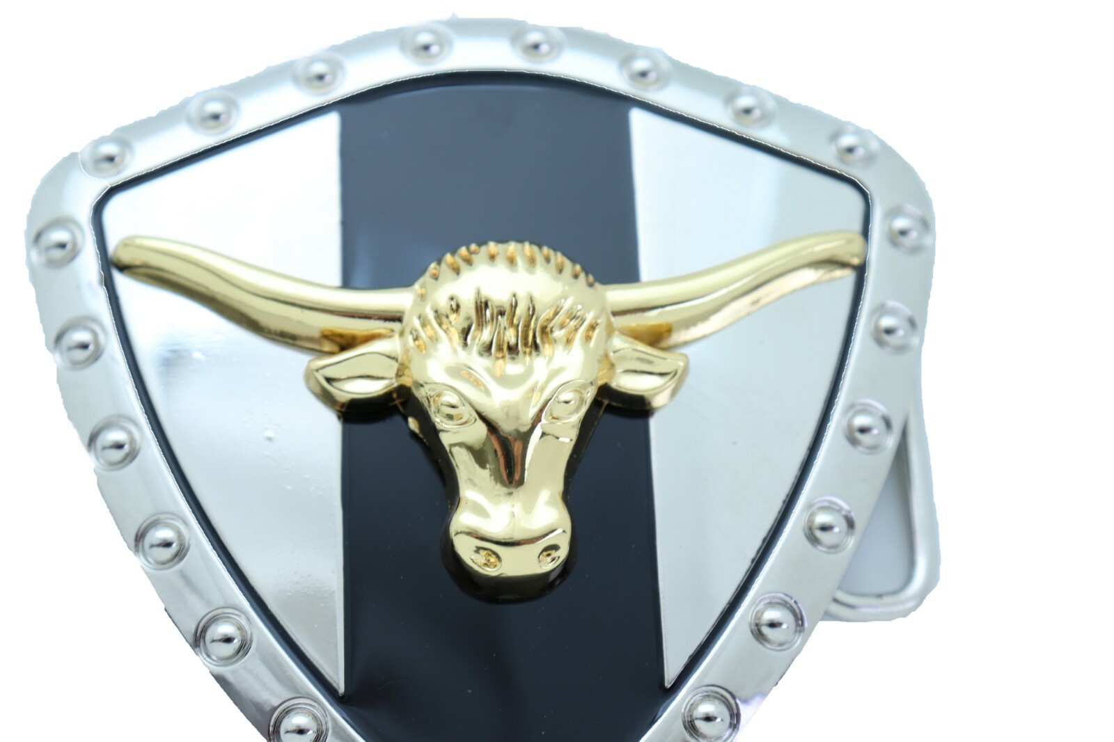 Men Silver Metal Western Belt Buckle Texas Lone Horn Cow Bling Gold Bull Shield