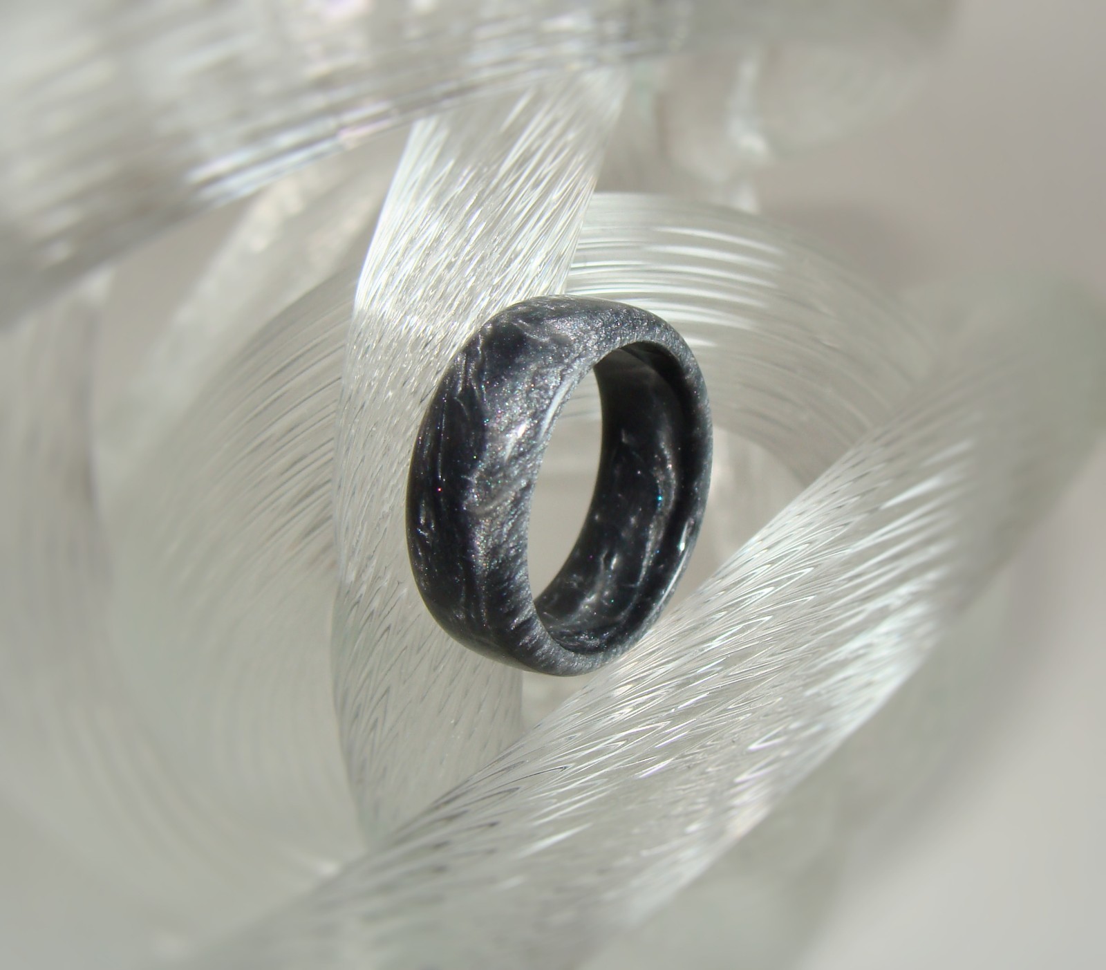 Silver Pearl Acrylic Resin Ring Men's or Women's Handmade to Order